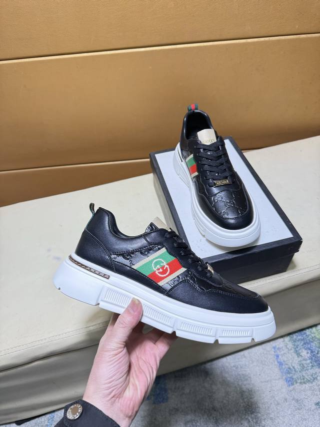 古奇 原单品质.~ 独特现代风运动鞋。休闲鞋潮男必备款 意大利进口原版品牌,进口原版皮,羊里 拒绝脱色磨脚 鞋底:原厂特供原版底,法国懒人风格设计 贴脚 在贴原单品质 超舒服原版底 。就好像实物拍摄实物更赞 ,高品质板鞋,瑞 男鞋码数:38-44 DDD