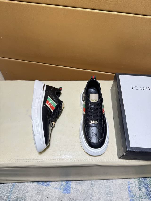 / 古奇 原单品质.~ 独特现代风运动鞋。休闲鞋潮男必备款 意大利进口原版品牌,进口原版皮,羊里 拒绝脱色磨脚 鞋底:原厂特供原版底,法国懒人风格设计 贴脚 在贴原