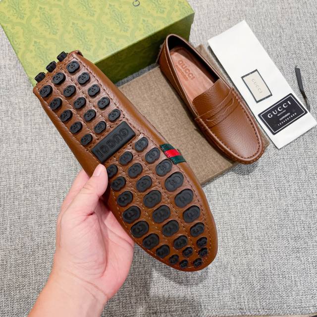 古驰 Gucci ,官网新款,1921年创立于佛罗伦萨,是全球奢侈品品牌之一,其独特的创意和革新风靡全球,古驰 永恒而经典,一直以来深受明星们的青睐,并成为世界上流社会人的宠儿,Gucci一直以高档奢华闻名于世,鞋面采用原版意大利棕色牛皮,舒适透气纯牛里 真材实料 ,极度美观,惊世骇俗,一个品牌可以深植内心 ,一双鞋也可以让你流连忘返,穿出的不仅仅是尊贵,更是一种气场,标准码37-47 DDD