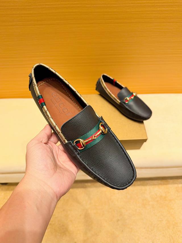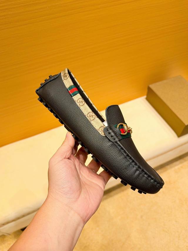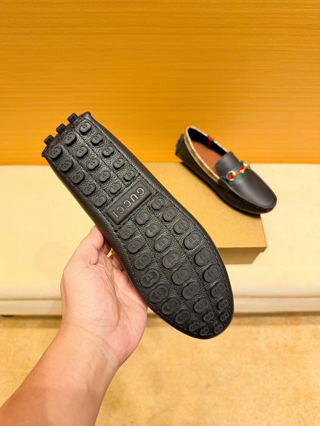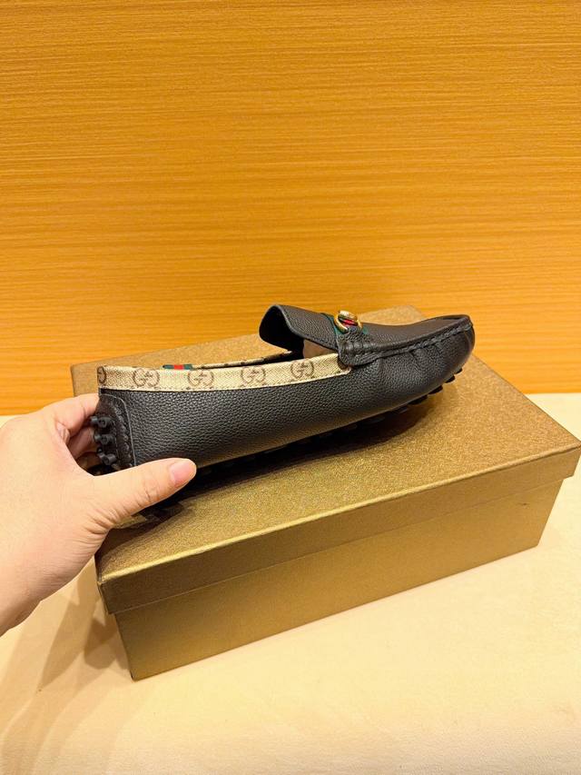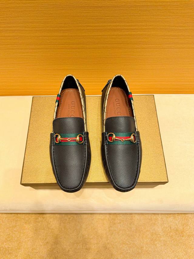 品牌古奇,英文名Gucci,官方旗舰店商务休闲豆豆鞋,巴黎时装周走秀款,惊世骇俗,古奇不一样的感觉,自然不失高雅,[爱情] 鞋面采用头层进口意大利牛皮,舒适透气