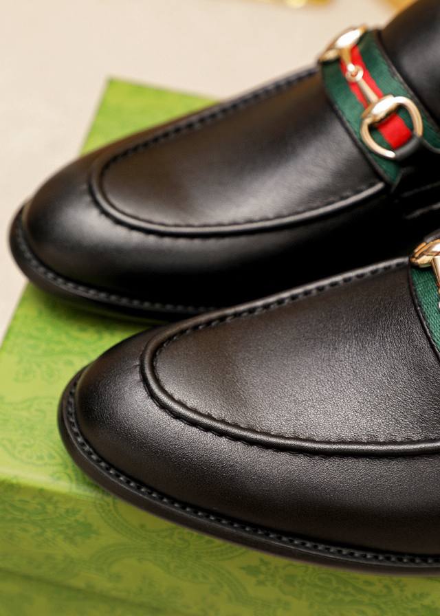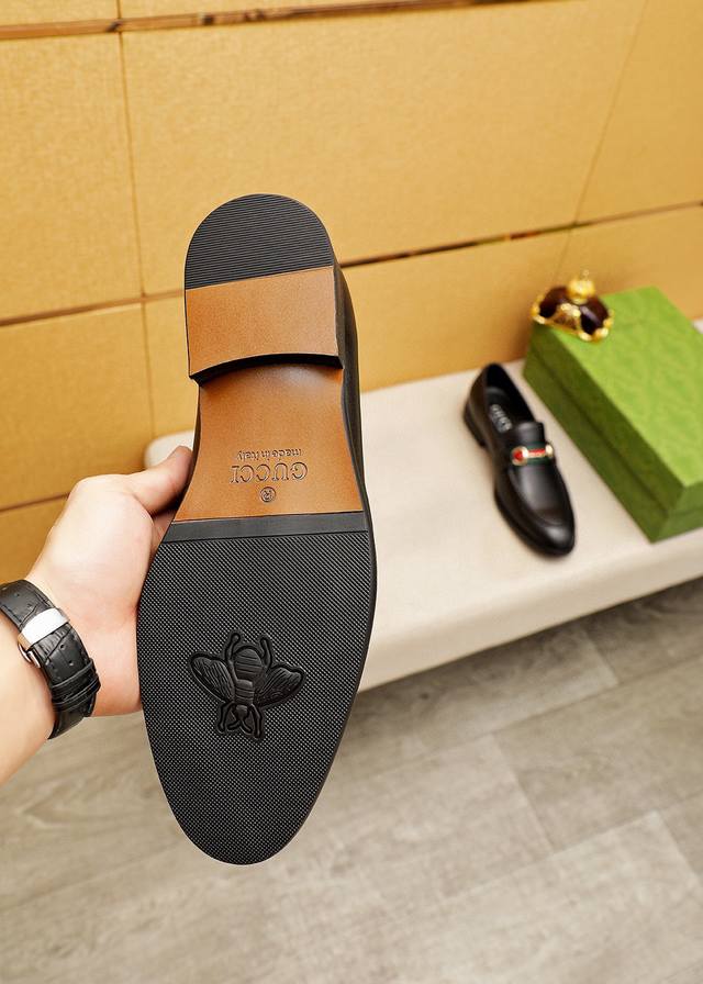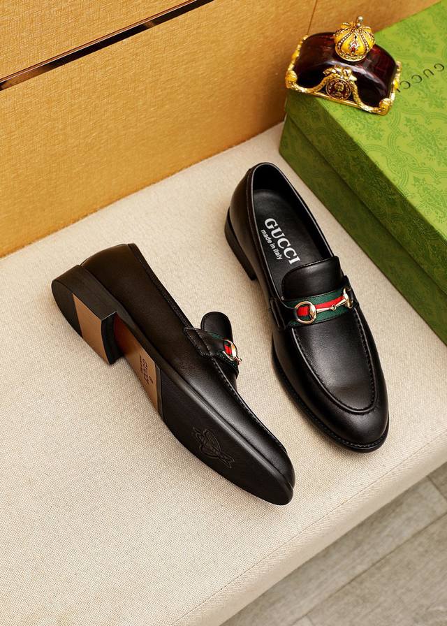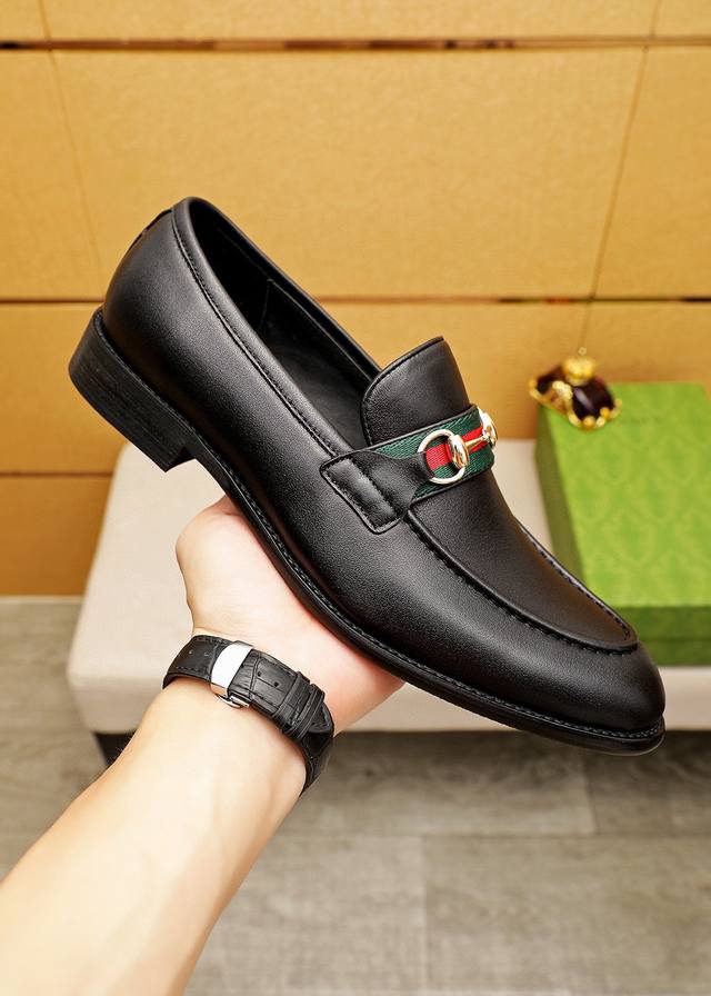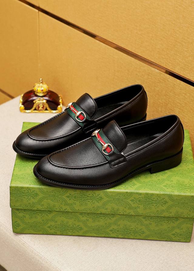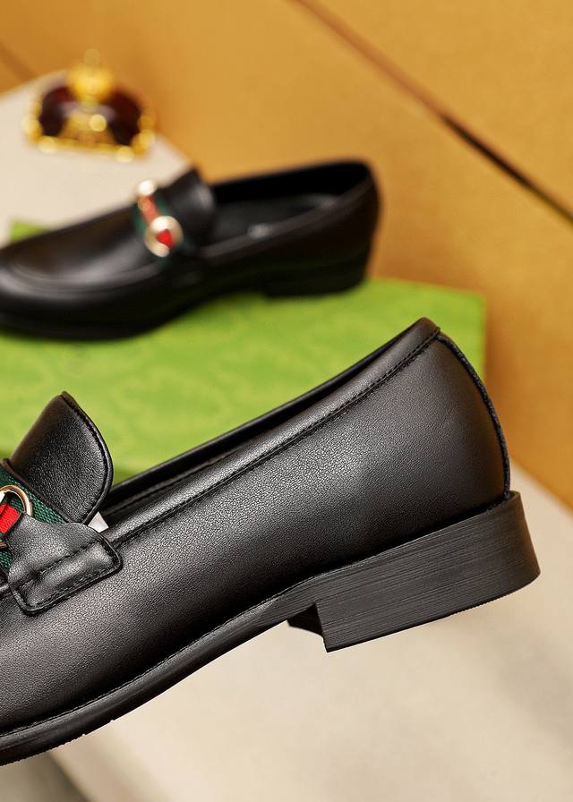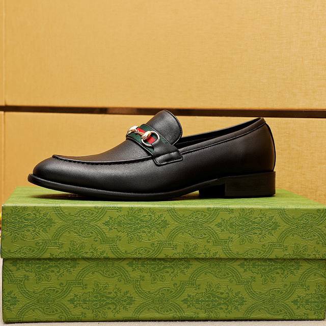 / 商品商标:Gucci 古驰 休闲皮鞋正码码数: 39-44 38.45.46订制 商品材料:精选 进口头层小牛皮鞋面+原版五金扣,进口羊皮内里。强烈立体视觉效果