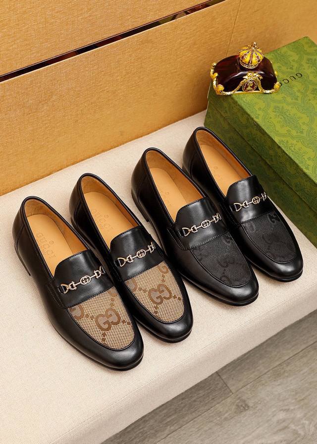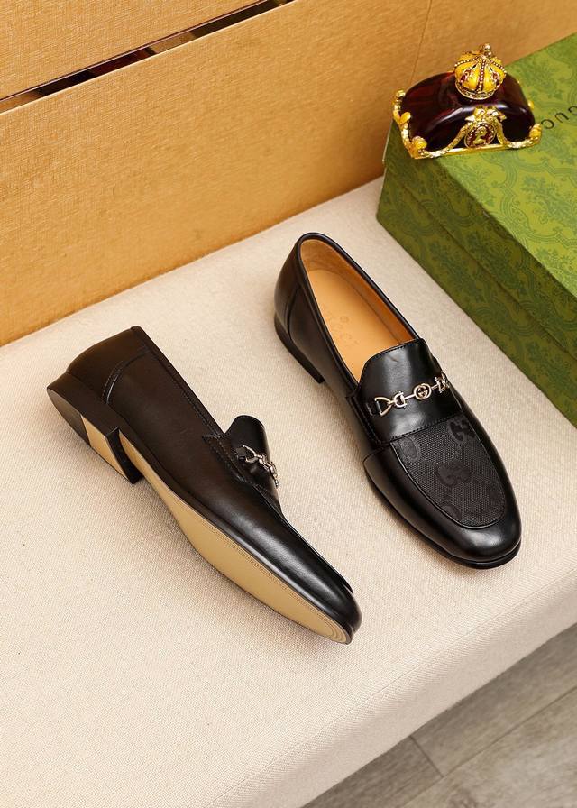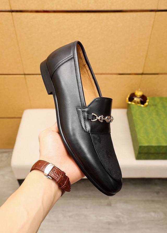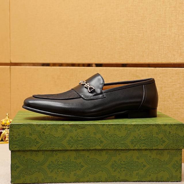 商品商标:Gucci 古驰 休闲皮鞋 正码码数: 38-44 45订制 商品材料:精选 进口头层小牛皮鞋面+经典五金扣,进口水染牛皮内里。强烈立体视觉效果,原版