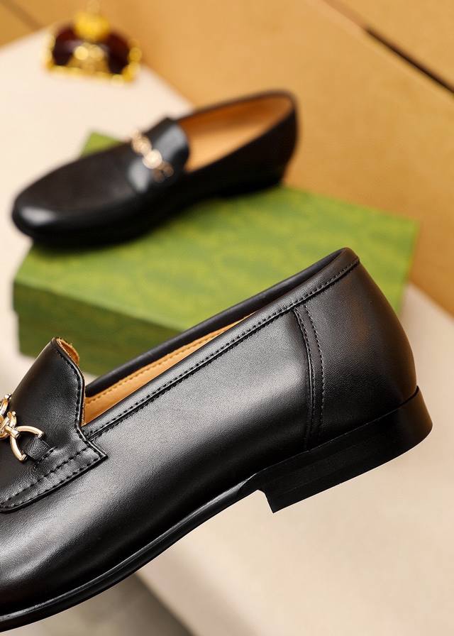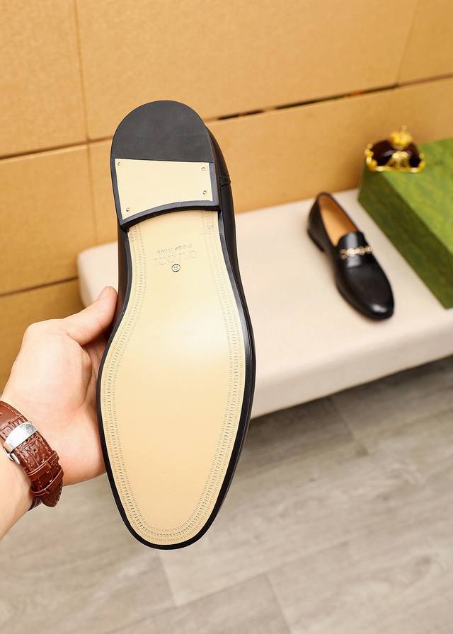 / 商品商标:Gucci 古驰 休闲皮鞋 正码码数: 38-44 45订制 商品材料:精选 进口头层小牛皮鞋面+经典五金扣,进口水染牛皮内里。强烈立体视觉效果,原版