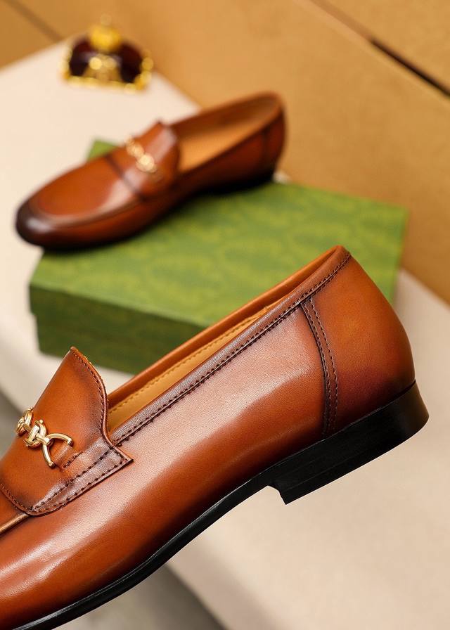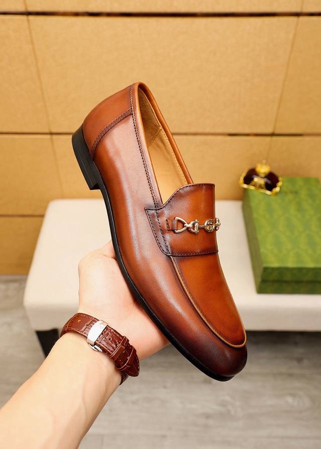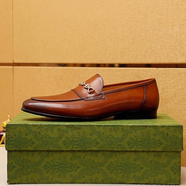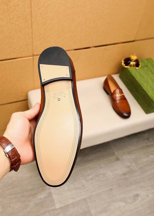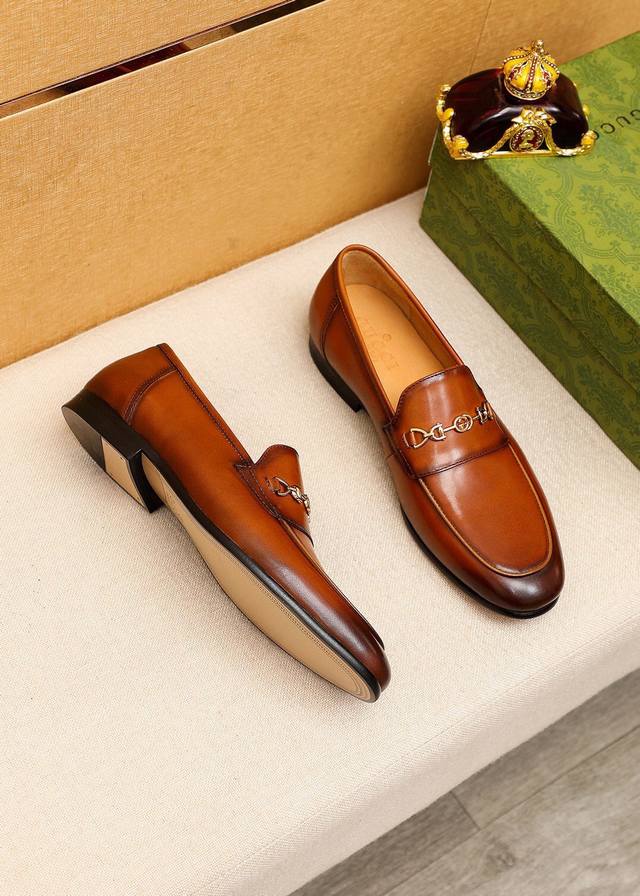工厂p价 古奇Gucc* 新品系列Ss爆款新品 休闲皮鞋、头层牛皮 鞋面五金扣和鞋口侧饰标识、鞋垫和鞋底有品牌标识...