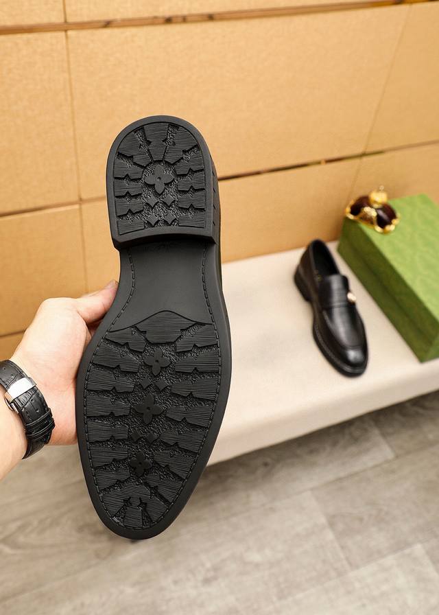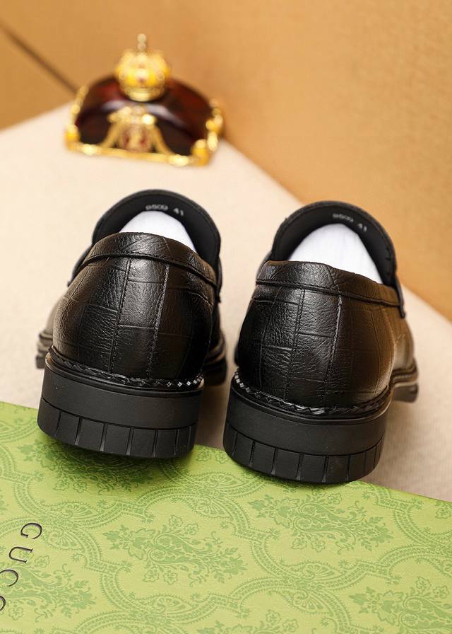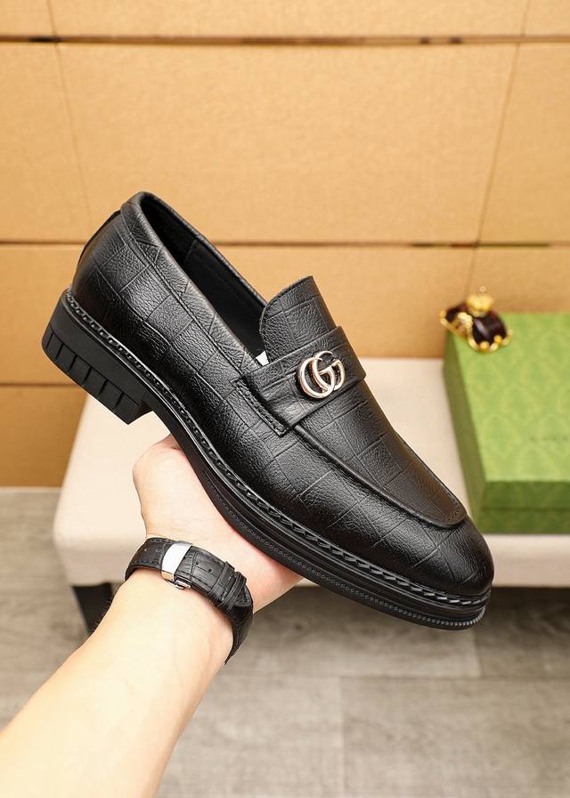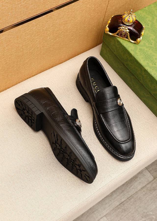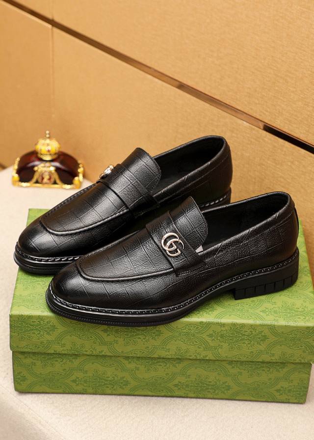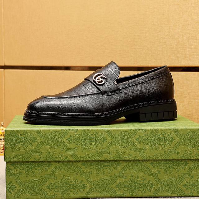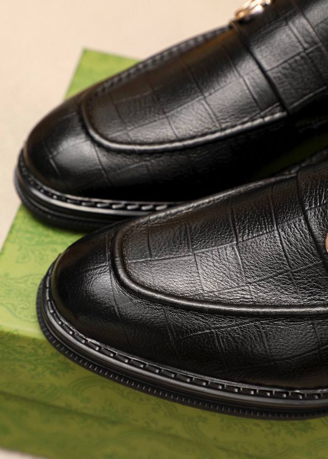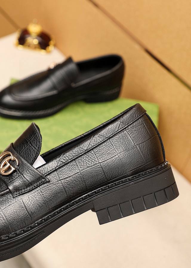 / 商品商标:Gucci 古驰 休闲皮鞋 正码码数: 38-44 45.46订制 商品材料:精选 进口头层小牛皮压花鞋面+奢华五金扣,进口水染牛皮内里。强烈立体视觉