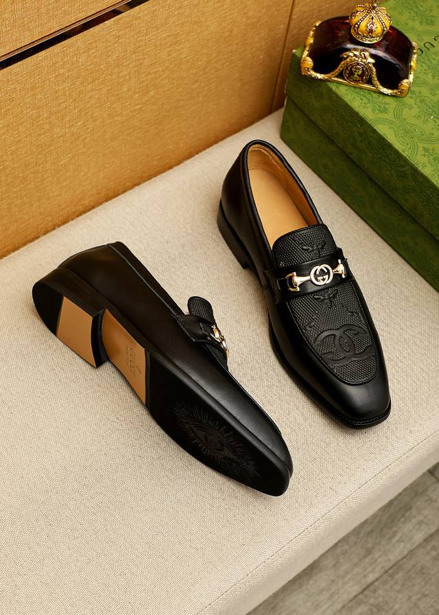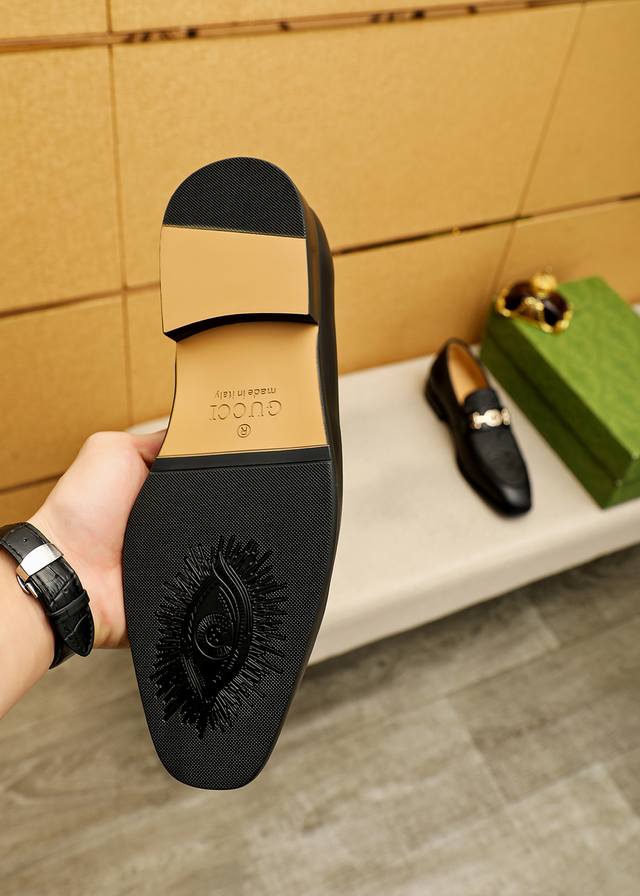 商品商标:Gucci 古驰 休闲皮鞋 DDD 正码码数: 38-44 45.46订制 DDD 商品材料:精选 进口头层小牛皮压花鞋面+奢华五金扣,进口牛皮内里。强烈立体视觉效果,原版大底 DDD 颜 色:1色可选 DDD