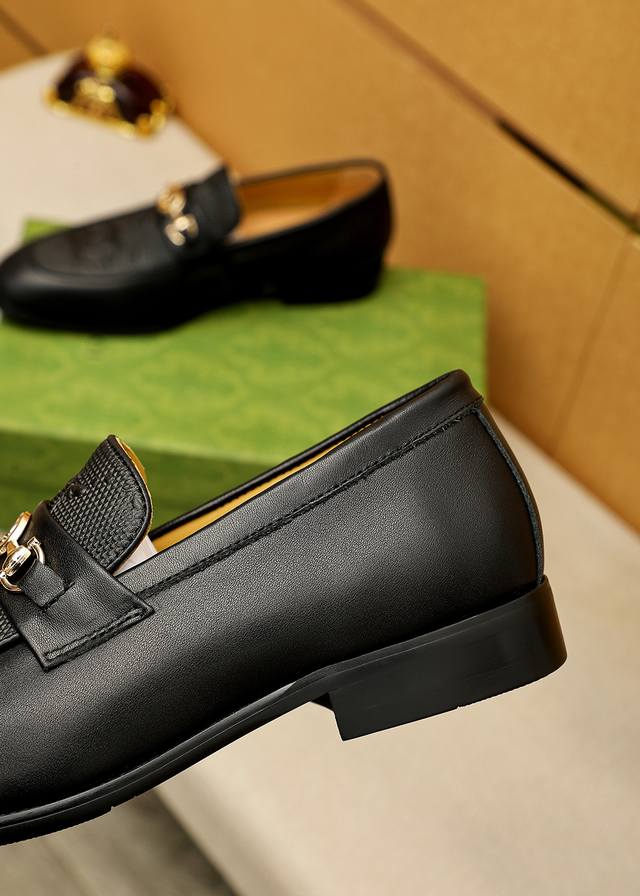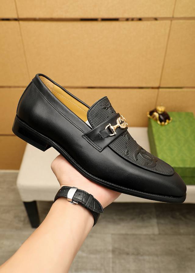 / 商品商标:Gucci 古驰 休闲皮鞋 正码码数: 38-44 45.46订制 商品材料:精选 进口头层小牛皮压花鞋面+奢华五金扣,进口牛皮内里。强烈立体视觉效果