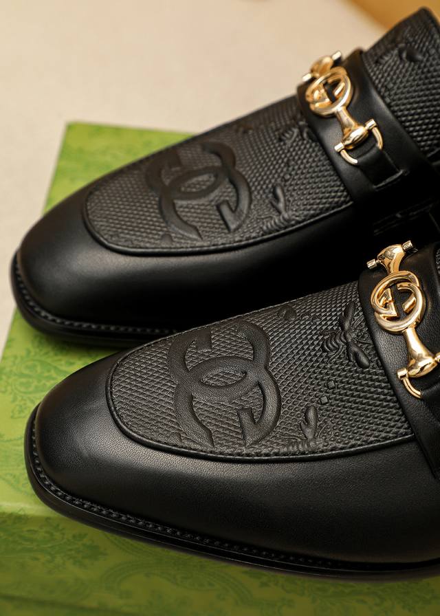 商品商标:Gucci 古驰 休闲皮鞋 正码码数: 38-44 45.46订制 商品材料:精选 进口头层小牛皮压花鞋面+奢华五金扣,进口牛皮内里。强烈立体视觉效果