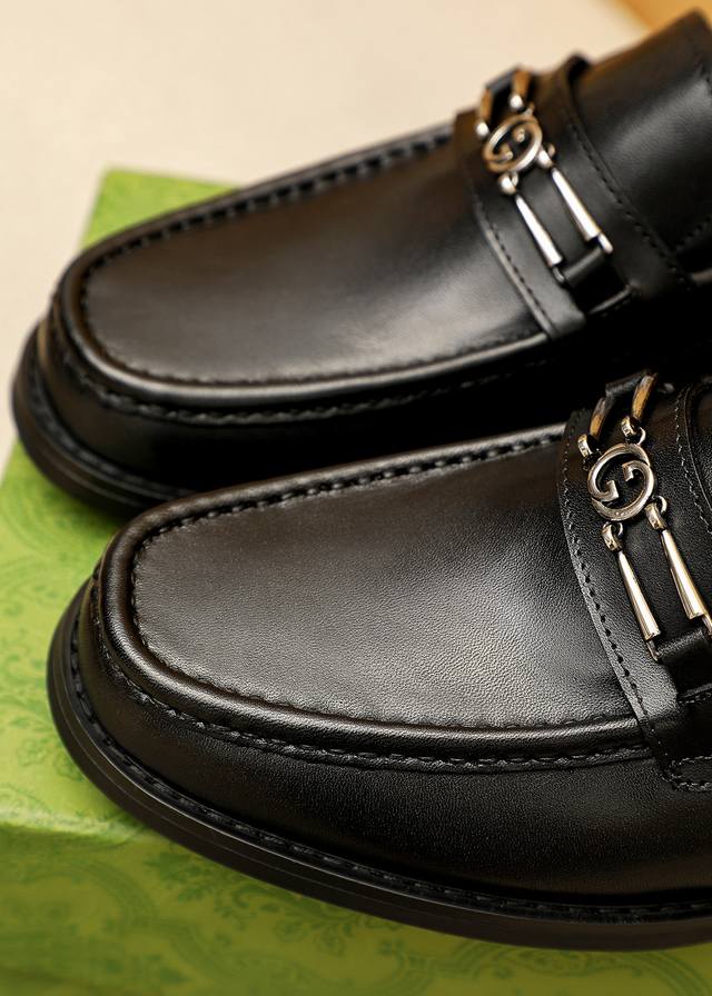 Guuci 古奇 男靴正装出货 专柜同款 莞产顶级猛货 懂货的赶紧下手!新款男士休闲皮鞋 进口小牛皮 皮料光泽透亮 皮孔均匀...