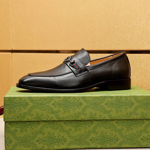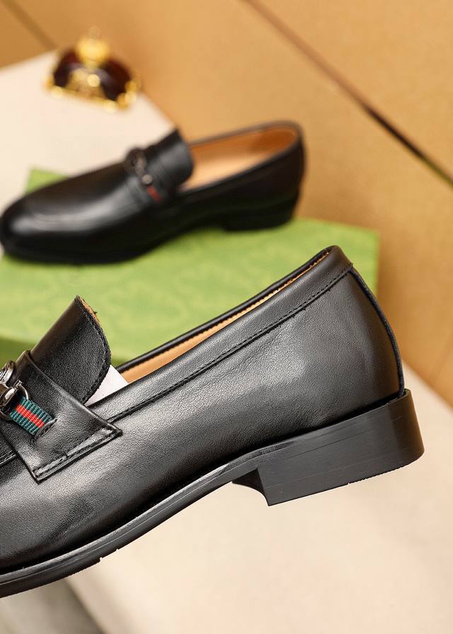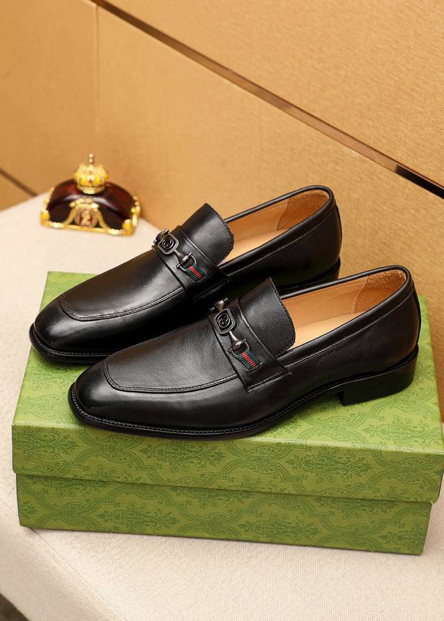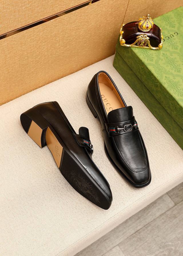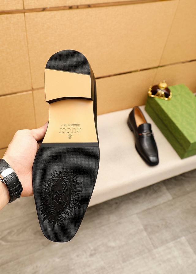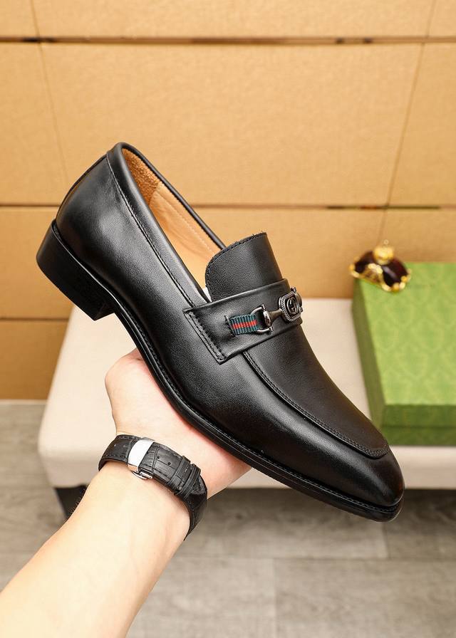 / 商品商标:Gucci 古驰 休闲皮鞋 正码码数: 38-44 45.46订制 商品材料:精选 进口头层小牛皮鞋面+奢华五金扣,进口水染牛皮内里。强烈立体视觉效果