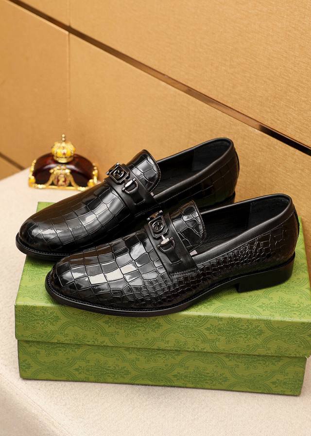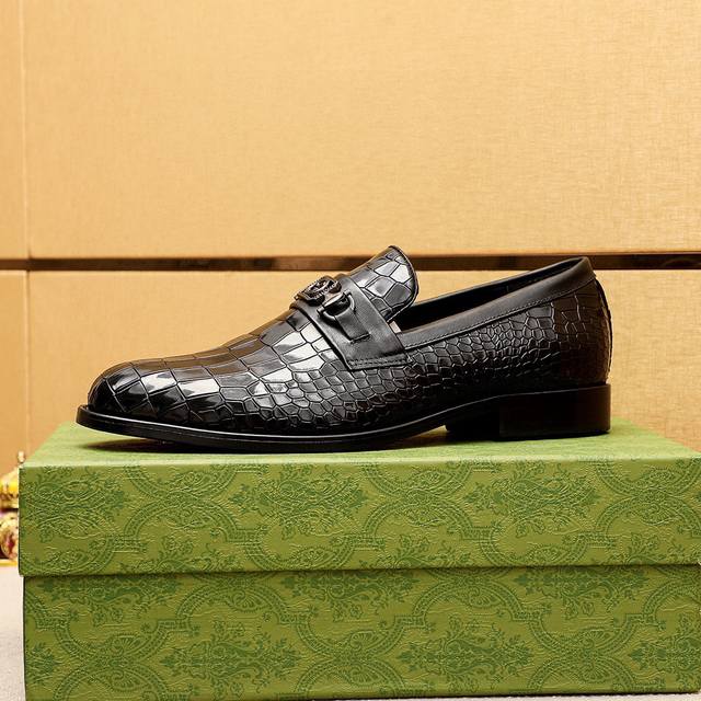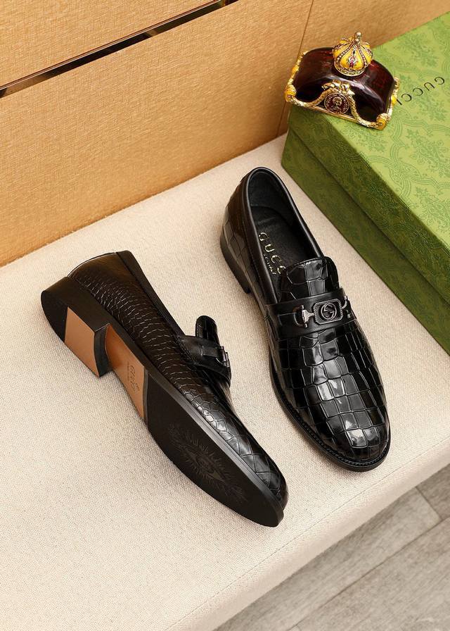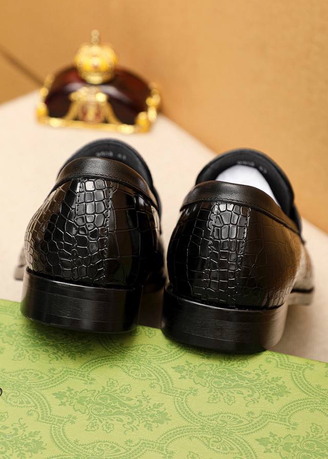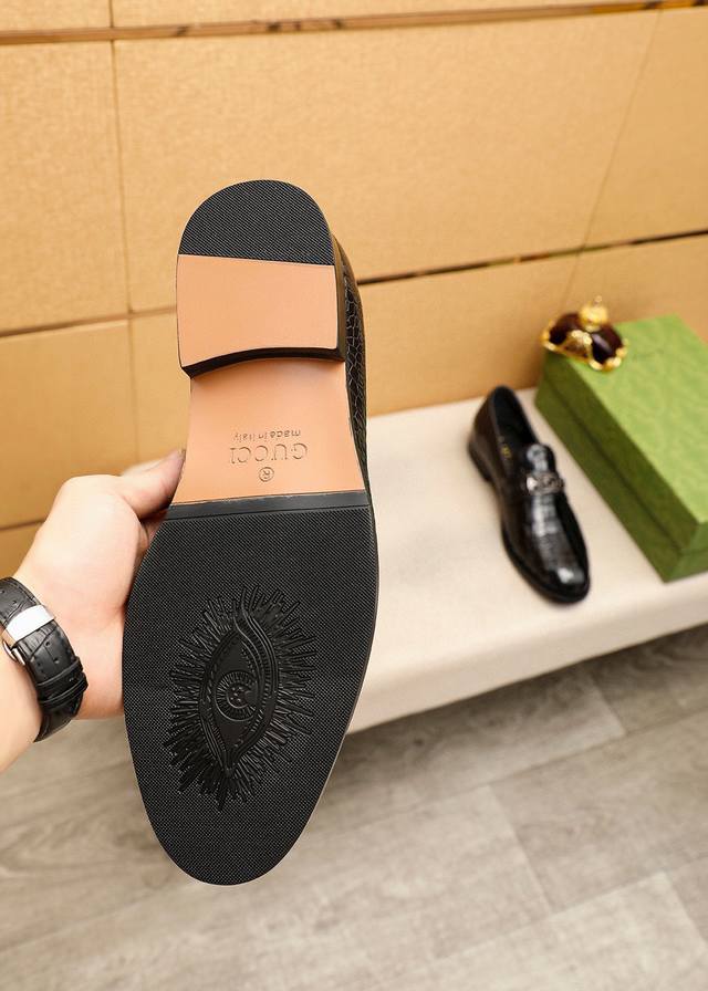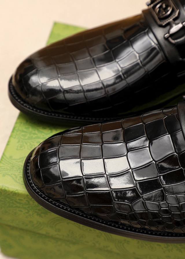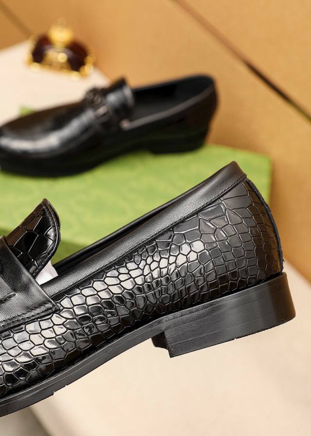 / 商品商标:Gucci 古驰 休闲皮鞋 正码码数: 38-44 45.46订制 商品材料:精选 进口头层开边珠牛皮压花鞋面+奢华五金扣,进口水染牛皮内里。强烈立体