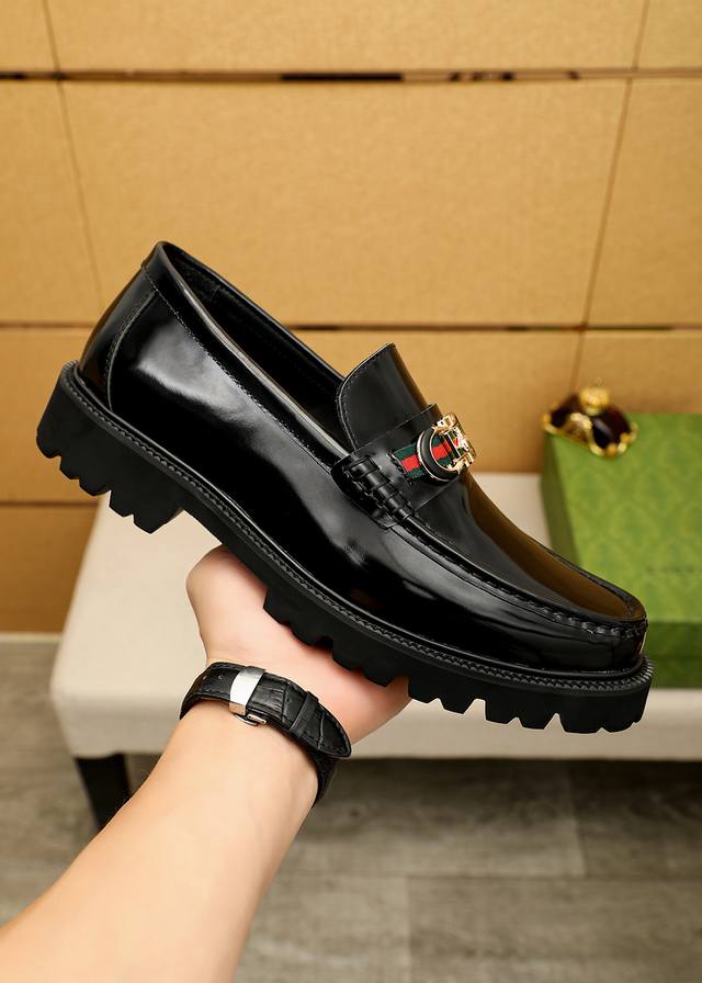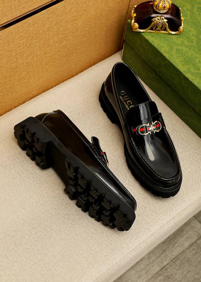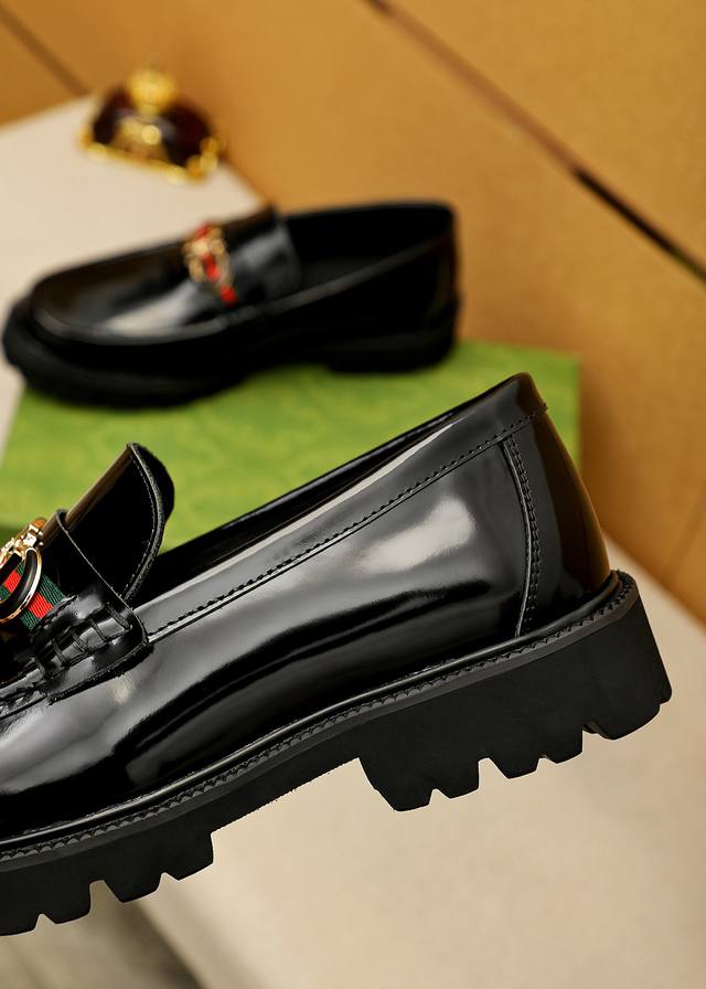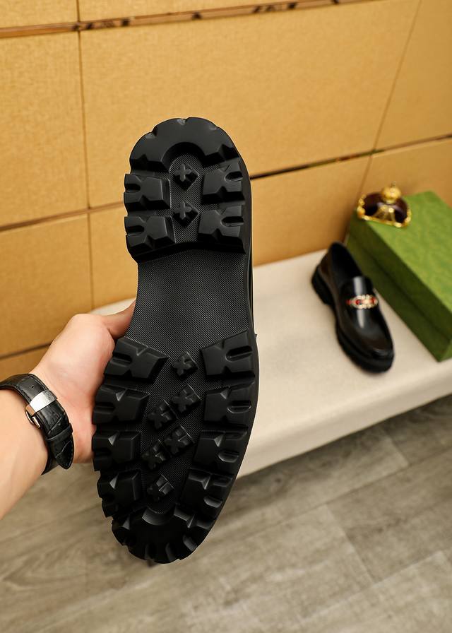/ 商品商标:Gucci 古驰 休闲皮鞋 正码码数: 38-44 45.46订制 商品材料:精选 进口头层开边珠牛皮鞋面+奢华五金扣,进口牛皮内里。强烈立体视觉效果