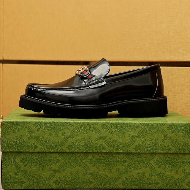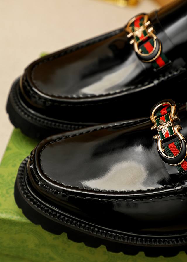 商品商标:Gucci 古驰 休闲皮鞋 正码码数: 38-44 45.46订制 商品材料:精选 进口头层开边珠牛皮鞋面+奢华五金扣,进口牛皮内里。强烈立体视觉效果