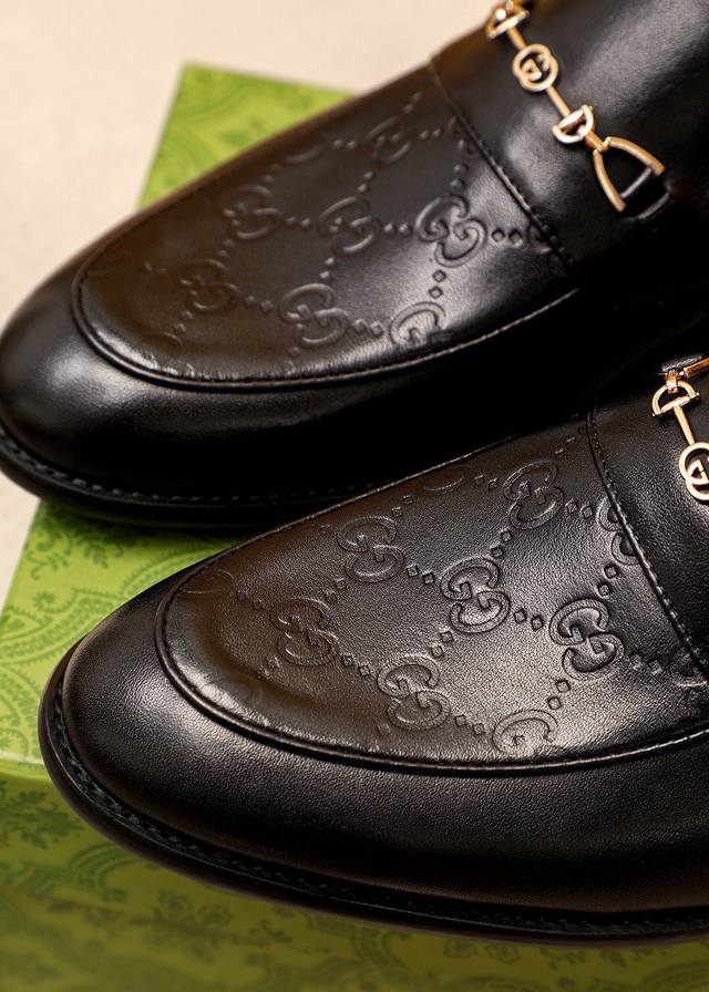 商品商标:Gucci 古驰 休闲皮鞋 正码码数: 39-44 38.45.46订制 商品材料:精选 进口头层小牛皮压花鞋面+奢华五金扣,进口羊皮内里。强烈立体视