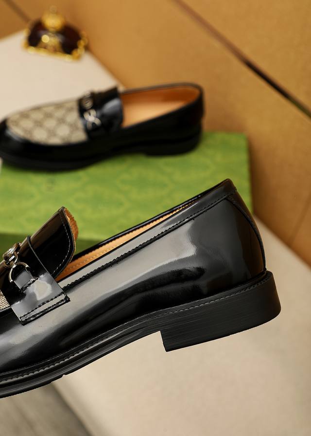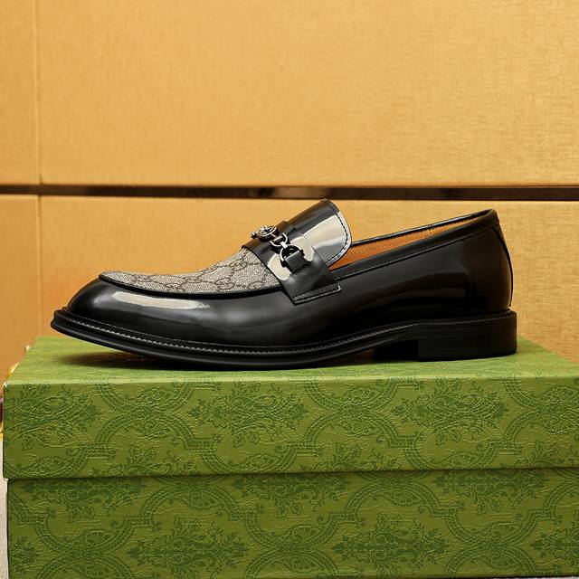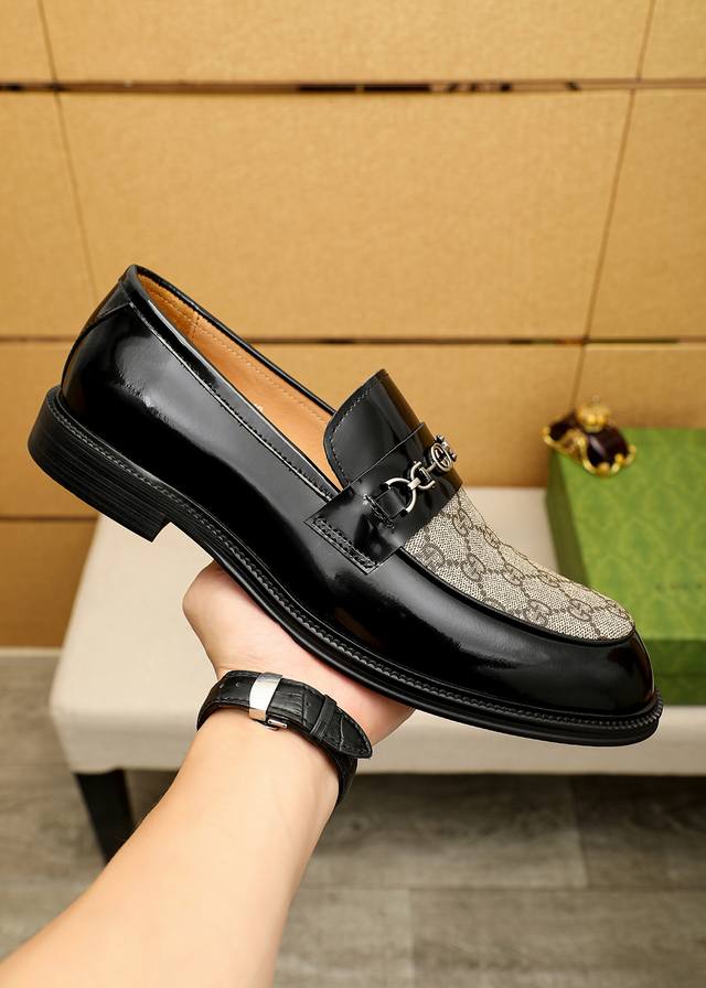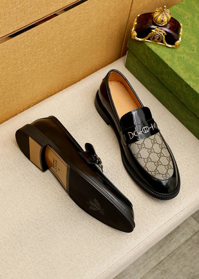 商品商标:Gucci 古驰 休闲皮鞋 正码码数: 39-44 38.45.46订制 商品材料:精选 进口头层开边珠牛皮压花鞋面+奢华五金扣,进口牛皮内里。强烈立
