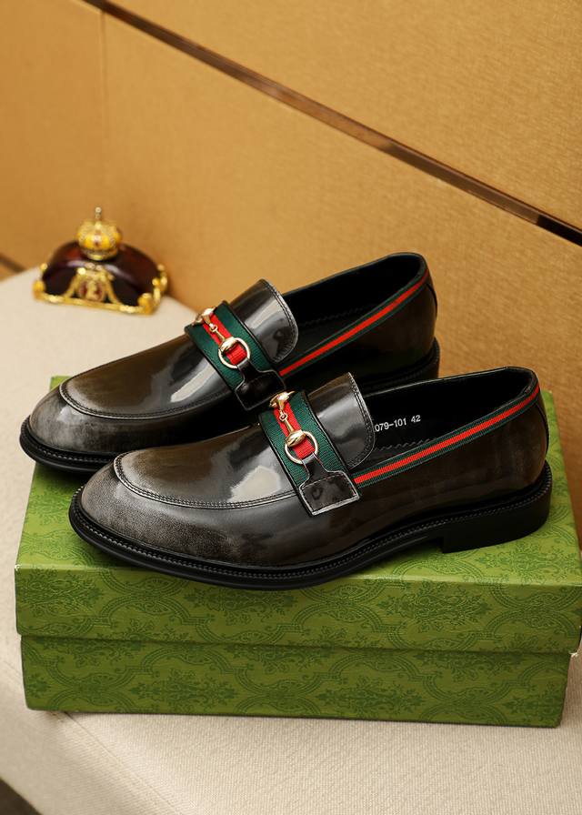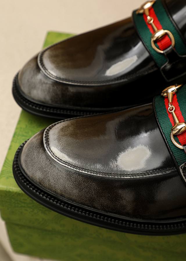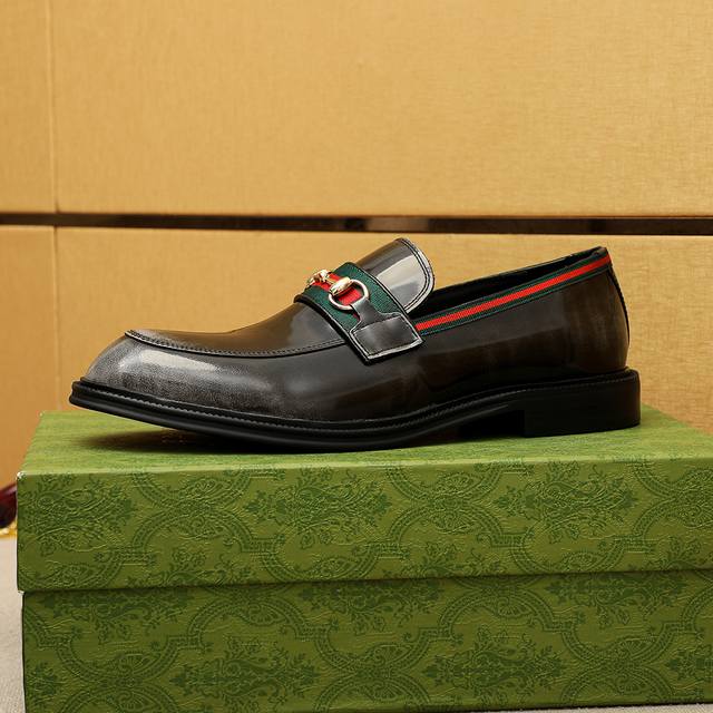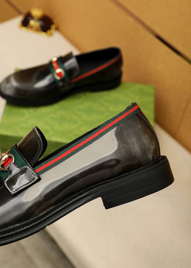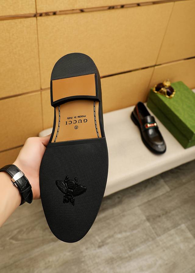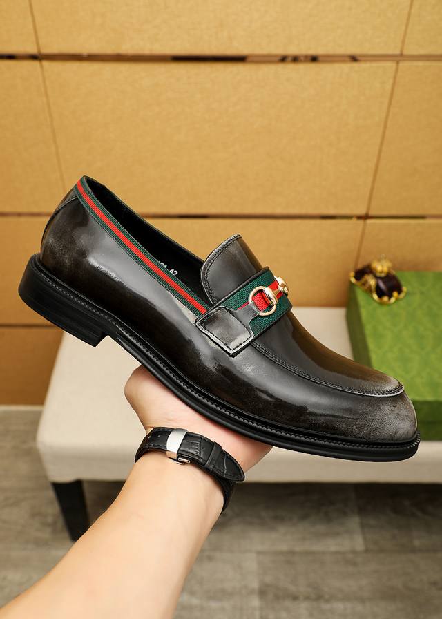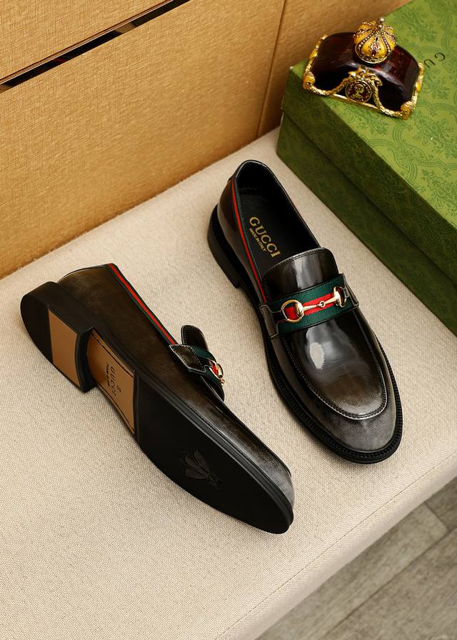 商品商标:Gucci 古驰 休闲皮鞋 正码码数: 39-44 38.45.46订制 商品材料:精选 进口头层开边珠牛皮鞋面+奢华五金扣,进口牛皮内里。强烈立体视