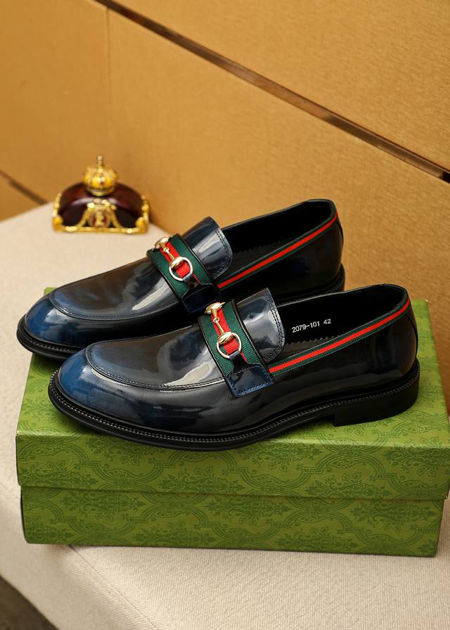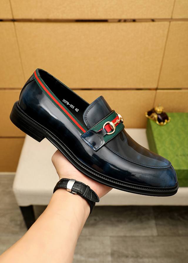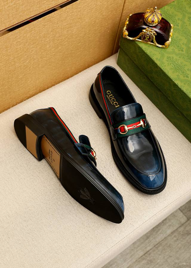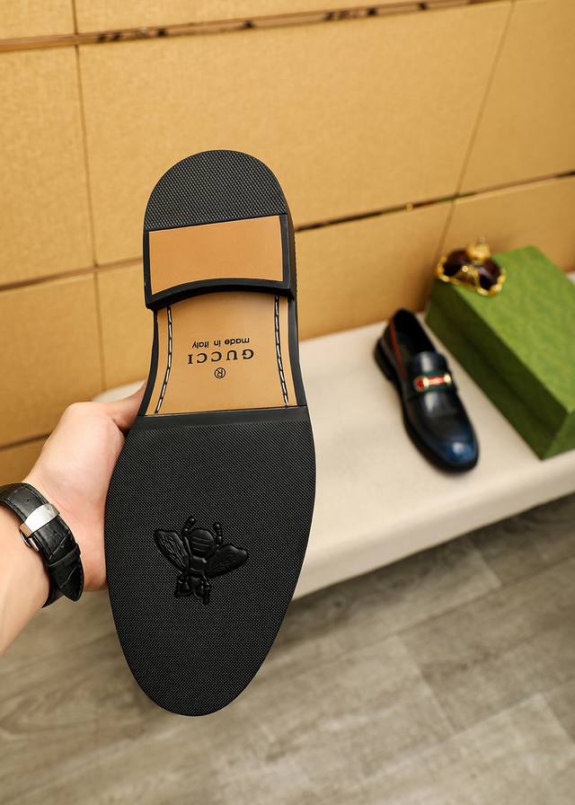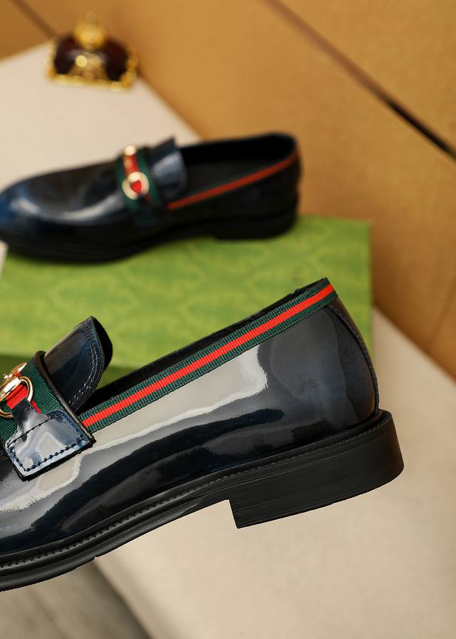 商品商标:Gucci 古驰 休闲皮鞋 正码码数: 39-44 38.45.46订制 商品材料:精选 进口头层开边珠牛皮鞋面+奢华五金扣,进口牛皮内里。强烈立体视