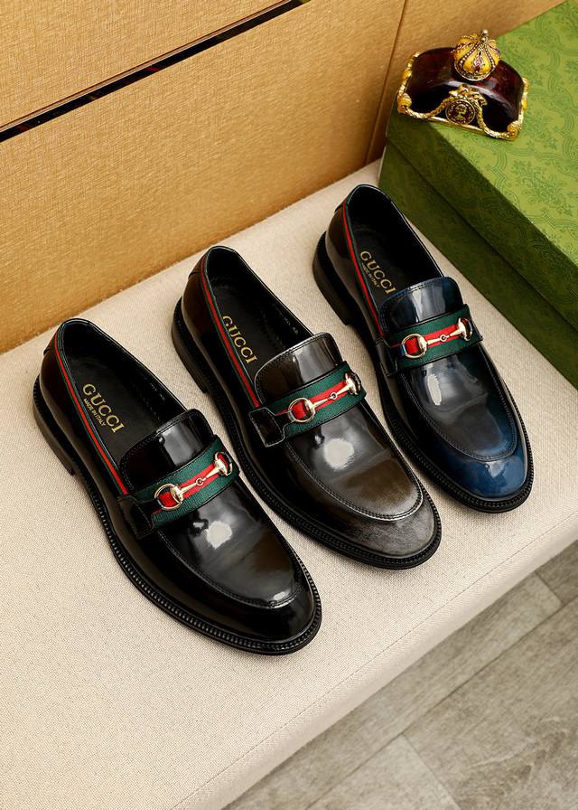 / 商品商标:Gucci 古驰 休闲皮鞋 正码码数: 39-44 38.45.46订制 商品材料:精选 进口头层开边珠牛皮鞋面+奢华五金扣,进口牛皮内里。强烈立体视