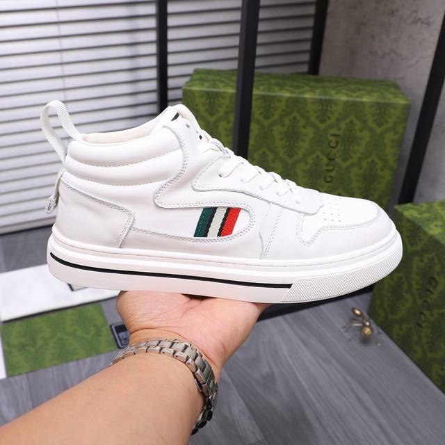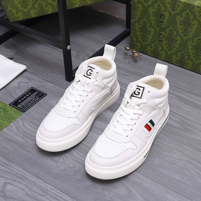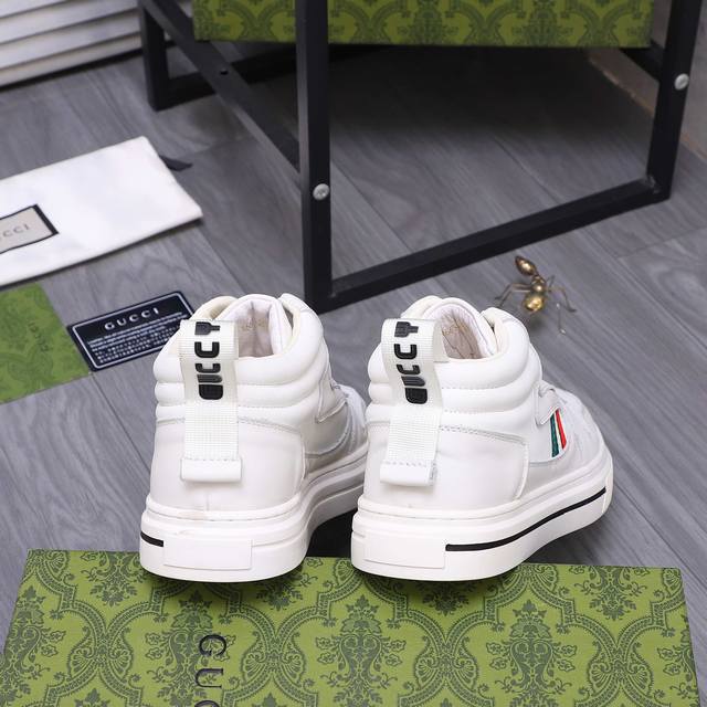 商品商标:Gucci 古驰 休闲高帮系带男鞋 Ddd 正码码数: 38-44 Ddd 商品材料:精选牛皮拼接鞋面 透气网内里 牛皮鞋垫 橡胶大底 DDD