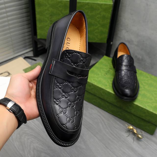 / 商品商标:Gucci 古驰 商务套脚皮鞋 正码码数: 38-46 38.45.46定做不退换 商品材料:精选牛皮压纹鞋面 牛皮内里 原版橡胶大底
