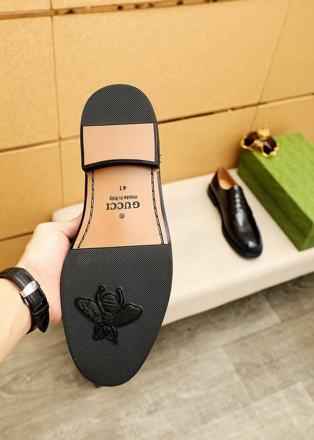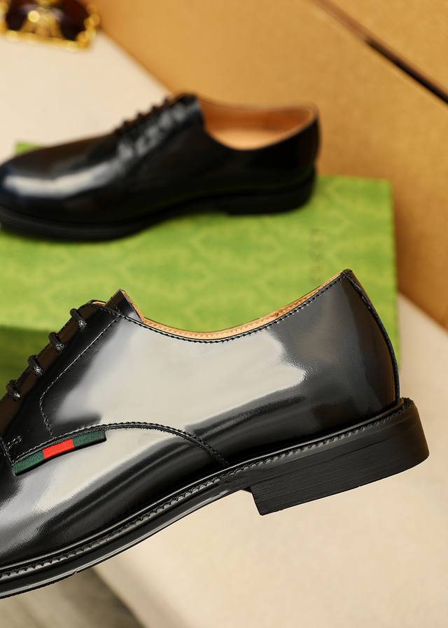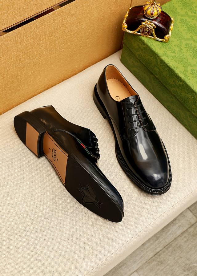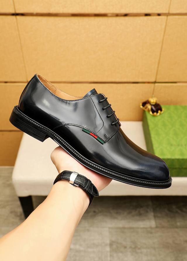 / 商品商标:Gucci 古驰 商务皮鞋 正码码数: 38-44 45.46订制 商品材料:精选 进口头层开边珠牛皮鞋面,进口水染牛皮内里。强烈立体视觉效果,原版大