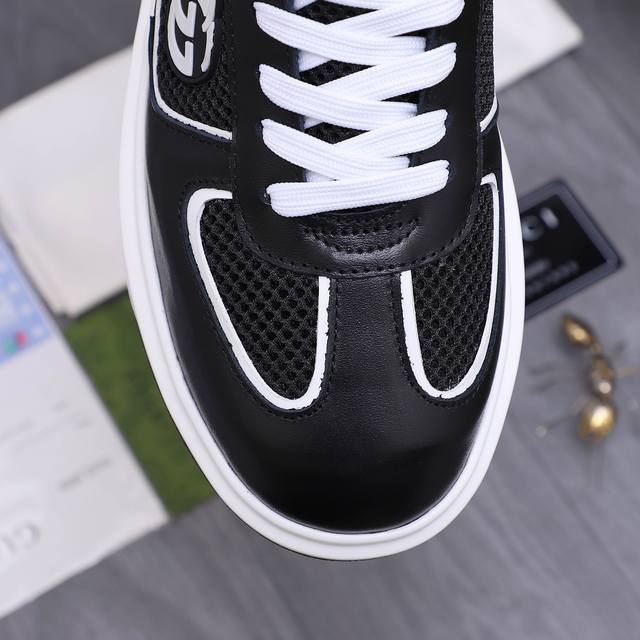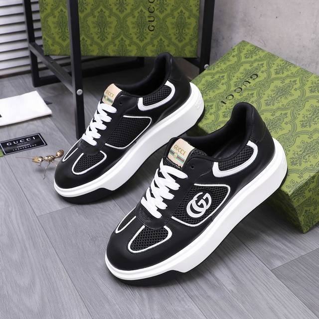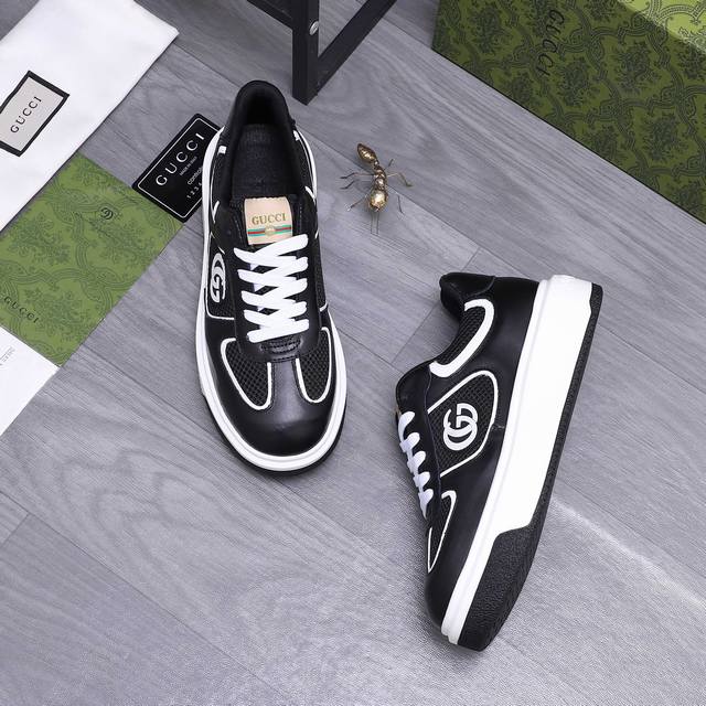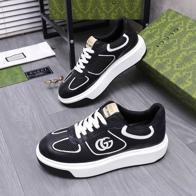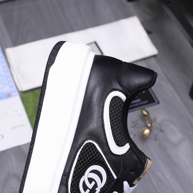 商品商标:Gucci 古驰 男式休闲板鞋 正码码数: 38-44 商品材料:精选牛皮拼接网面 网内里 牛皮鞋垫 橡胶大底