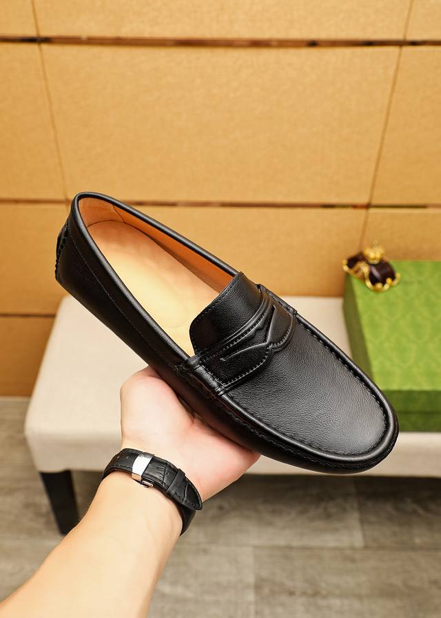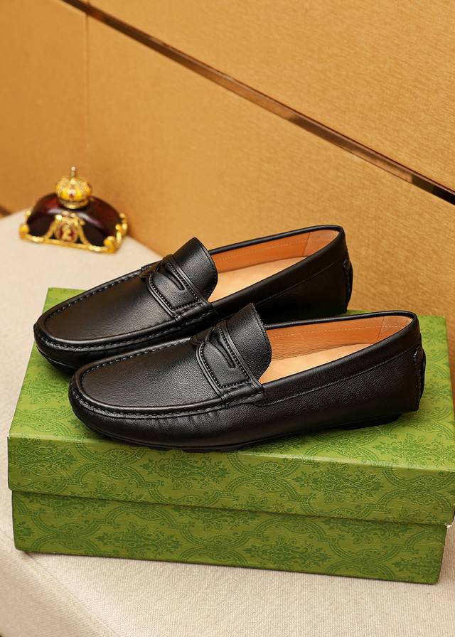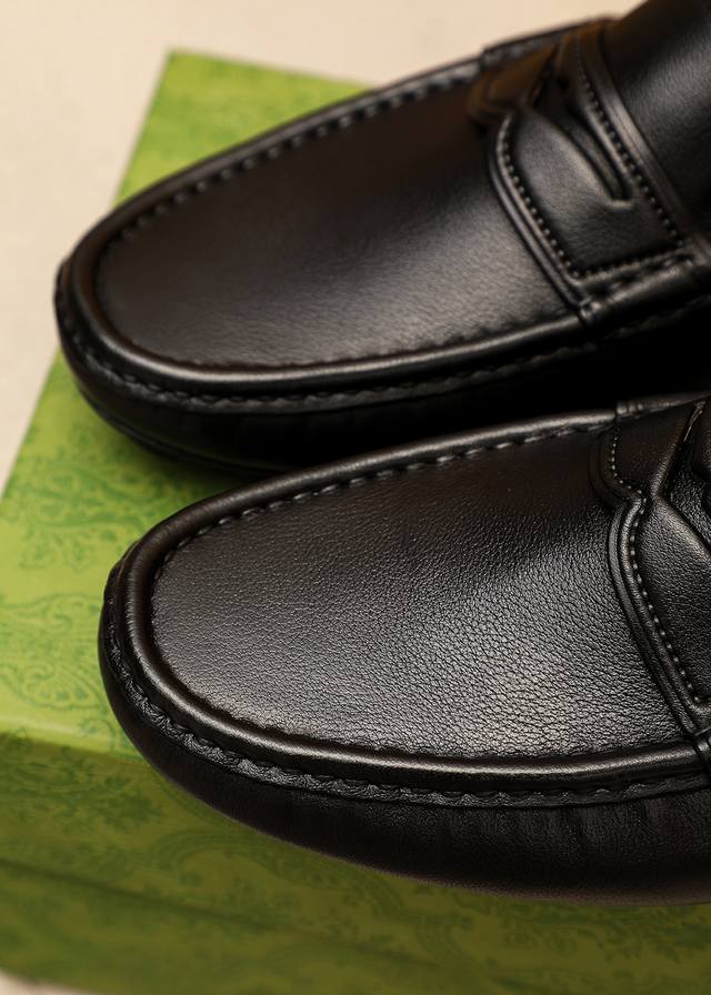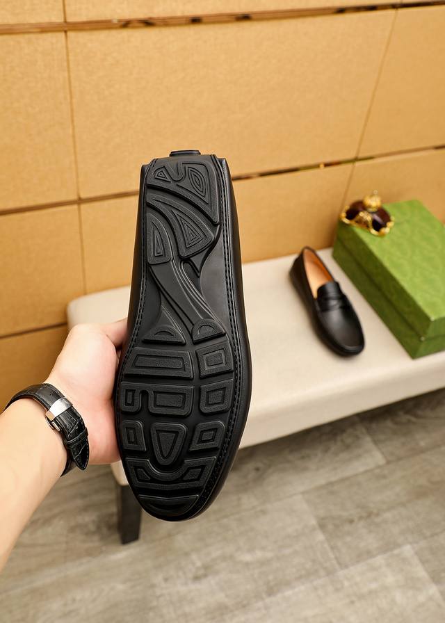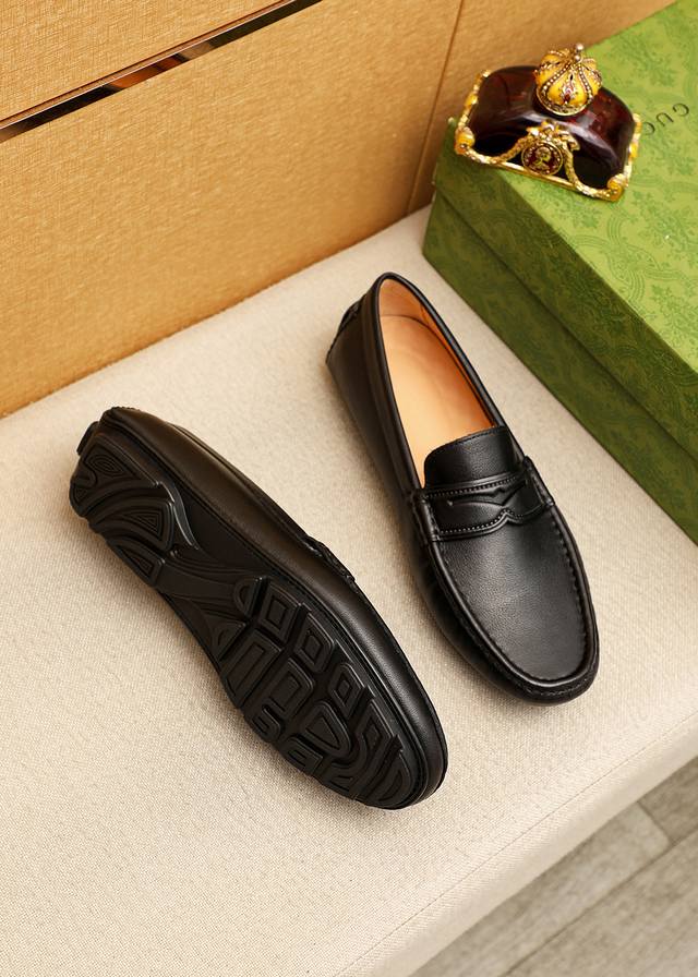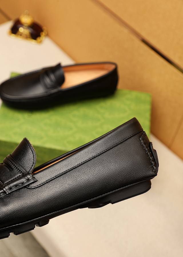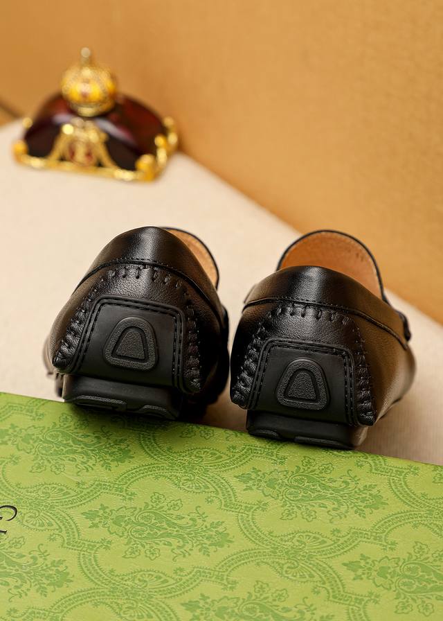 / 商品商标:Gucci 古驰 豆豆鞋 正码码数: 38-44 37.45.46订制 商品材料:精选 进口头层荔枝纹牛皮鞋面,进口猪皮内里。强烈立体视觉效果,橡胶大