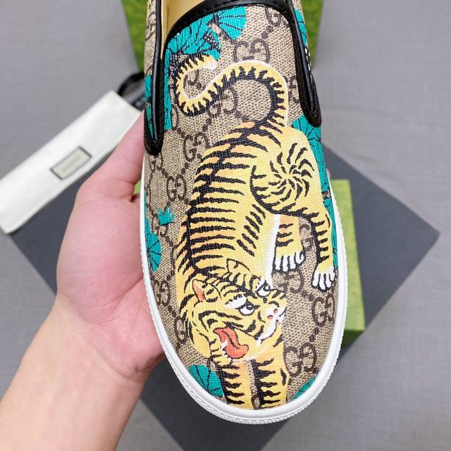 / 官网同步1:1复刻 Gucci 男士2025专柜同步发售,1:1大G字体,高端3D图案、时尚休闲,舒适透气个性,潮男首选,进口羊皮里,舒适透气,时尚潮流,潮男必