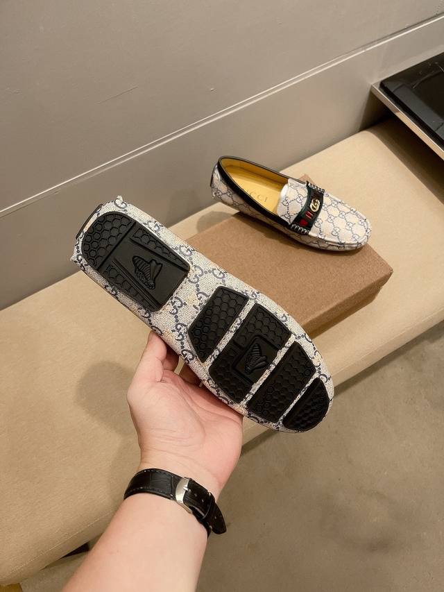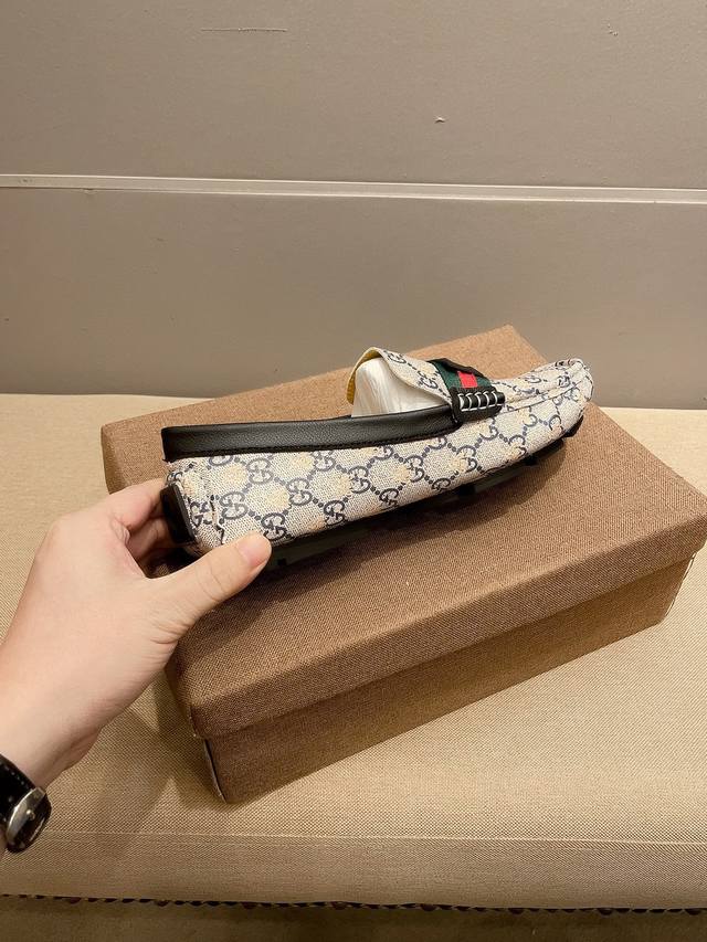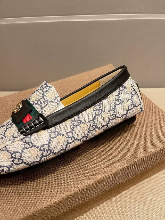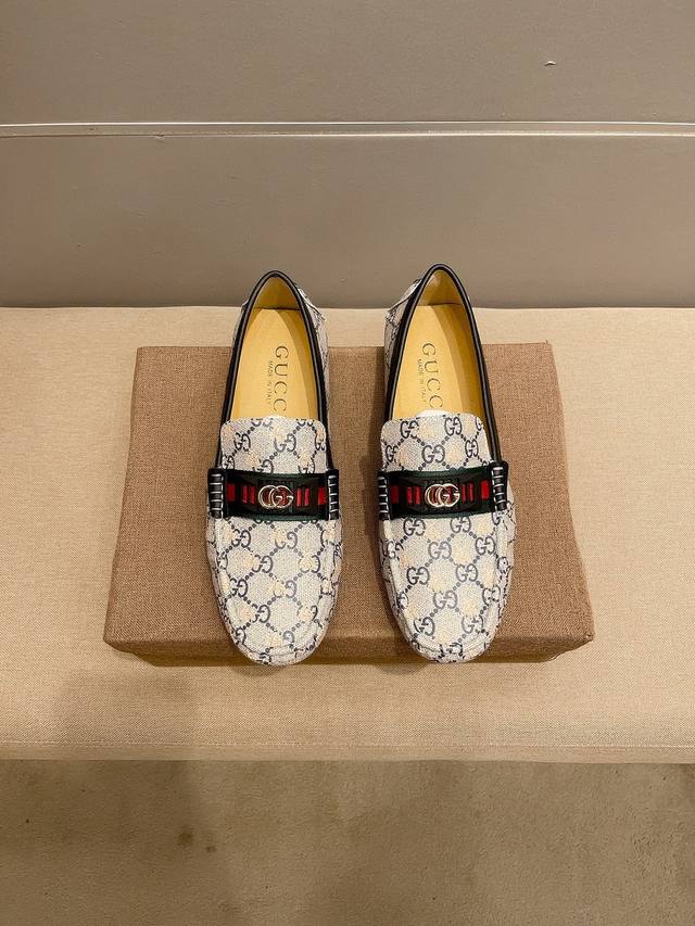 实价 Gucci 古奇官方新款,意大利名模贵族们棒棒款,时尚界的佼佼者,无可超越,官方高品质精品豆豆男鞋。明星周杰伦同款,原单正品,采用进口原版牛皮+原版牛皮内