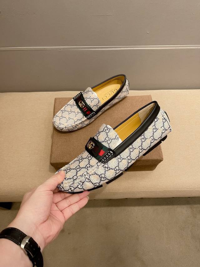 / 实价 Gucci 古奇官方新款,意大利名模贵族们棒棒款,时尚界的佼佼者,无可超越,官方高品质精品豆豆男鞋。明星周杰伦同款,原单正品,采用进口原版牛皮+原版牛皮内