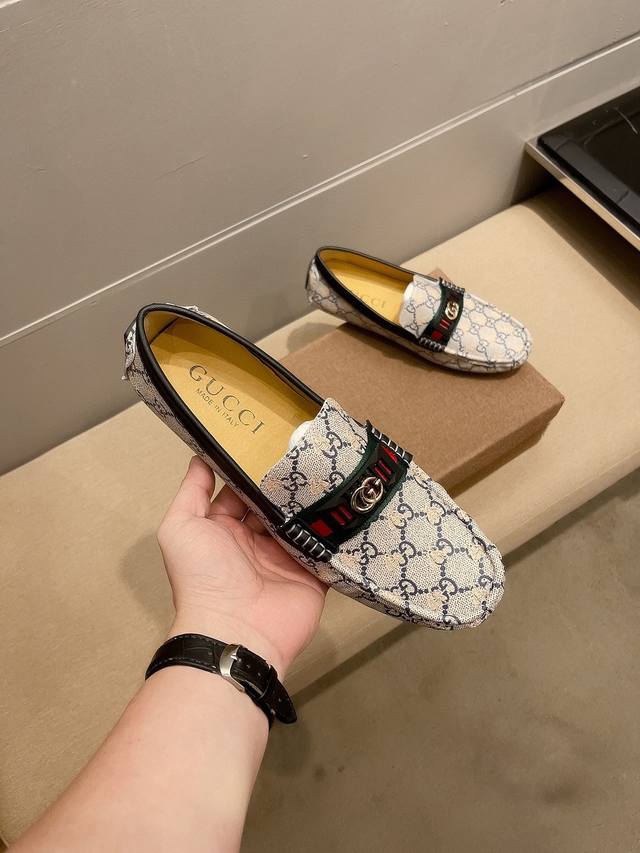 FFF 实价 Gucci 古奇官方新款,意大利名模贵族们棒棒款,时尚界的佼佼者,无可超越,官方高品质精品豆豆男鞋。明星周杰伦同款,原单正品,采用进口原版牛皮+原版牛皮内里真材实料,法国殿堂级尊贵款售价25880瑞士法郎,法国巴黎时装周走秀款 ,一个品牌可以深植内心 ,一双鞋也可以让你流连忘返,穿出的不仅仅是尊贵,更是一种气场标准37-47 DDD