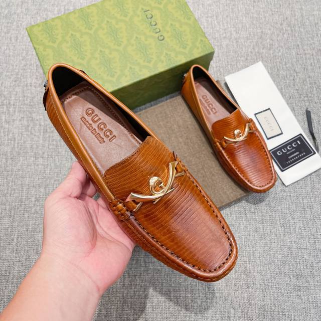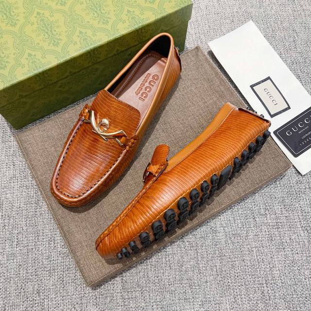 实 ,古奇官网高端爆款豆豆鞋,鞋面头层进口头层牛皮,奢华高档,头层牛里 真材实料 ,原版进口耐磨橡胶底, 官网出品 男士优雅心备佳品,采用精湛工艺。穿着舒适。鞋面性感女神尽显品牌低调优雅高端,无论是专心致志地工作,与家人共度闲暇时光,还是在城市或乡间体验高雅的生活方式,该系列均可彰显真正的男性魅力。 [奋斗]标准码37~46