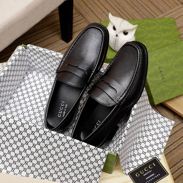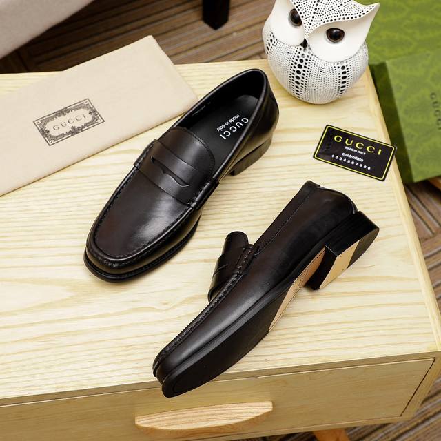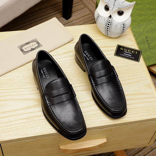 工厂价 古驰 Gucci 官网男士商务正装皮鞋更新香港专柜同步新款完全一比一复刻出货专柜品质零差距0外均采用进口牛皮配原版五金扣皮内里制作,黑色、配码 38-45