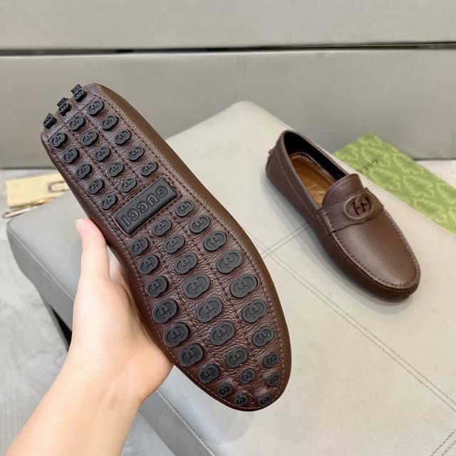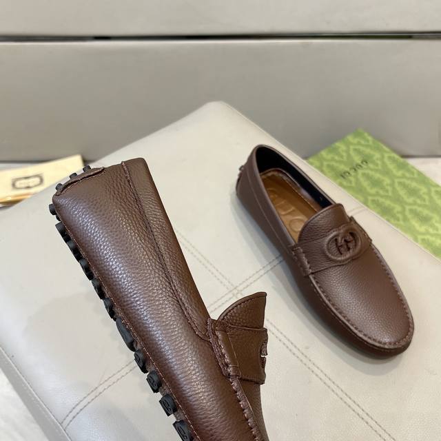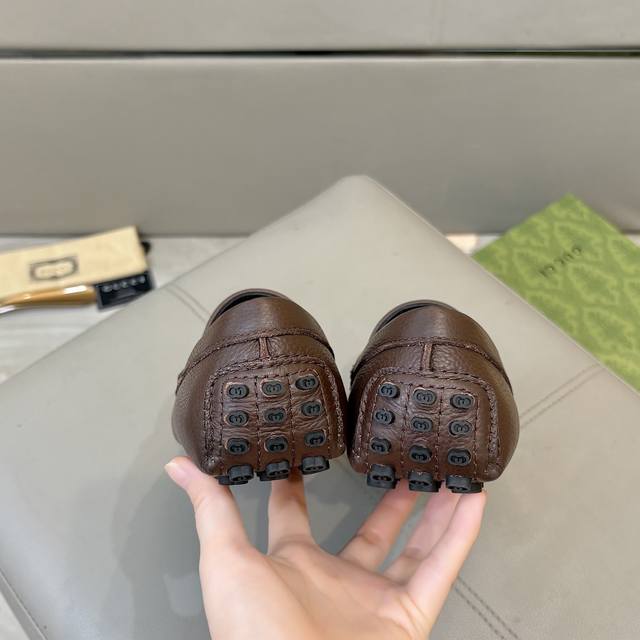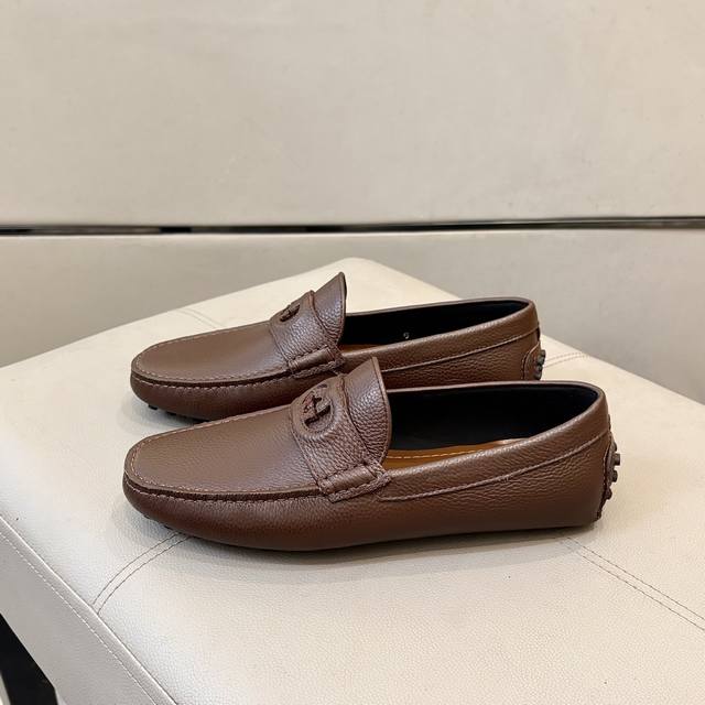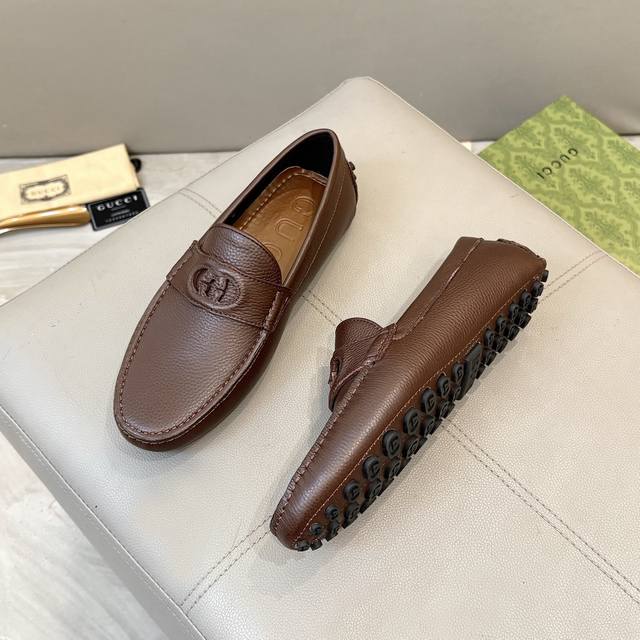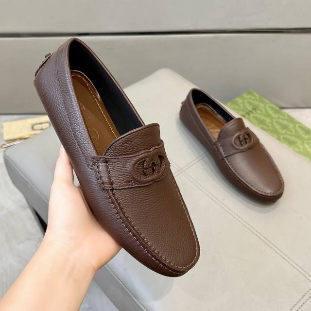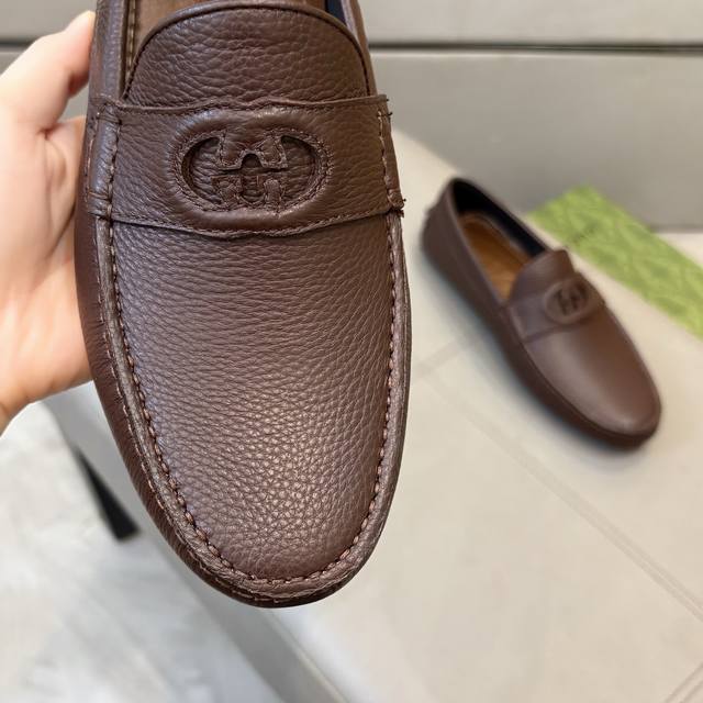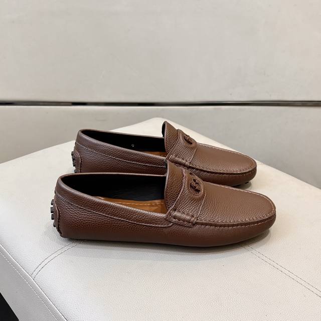 工厂p价 古奇男士豆豆鞋 2025官网同步 高端品质 市场顶级版本 进口头层牛皮黑色牛里垫脚水染棕牛里。 黑色荔枝纹 尺码38-45