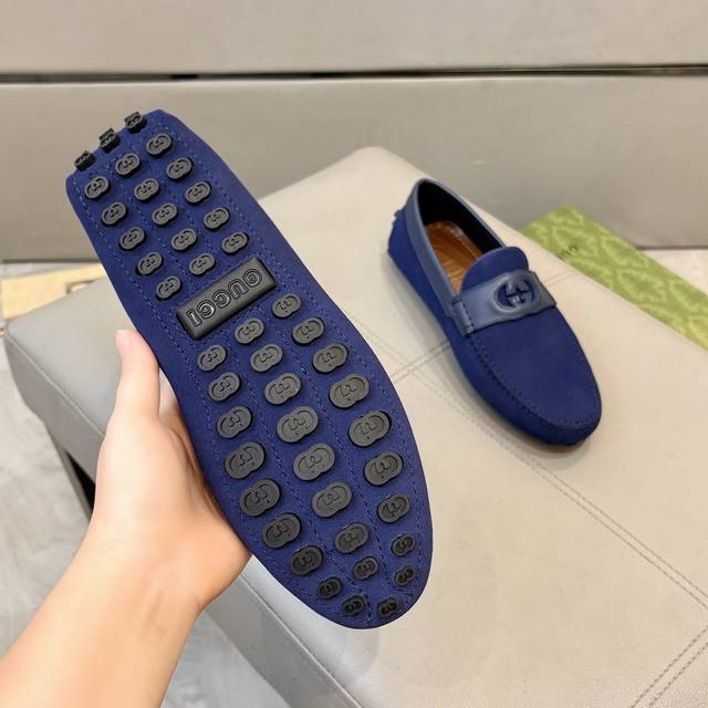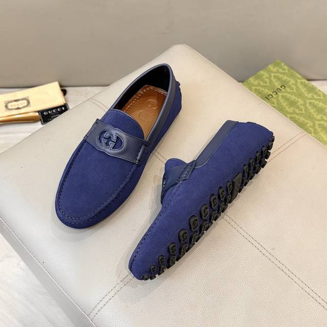工厂p价 古奇男士豆豆鞋 2025官网同步 高端品质 市场顶级版本 进口头层磨砂皮黑色牛里垫脚水染棕牛里。 黑色进口磨砂皮 尺码38-45