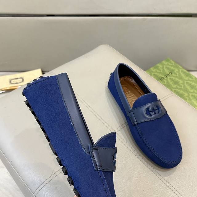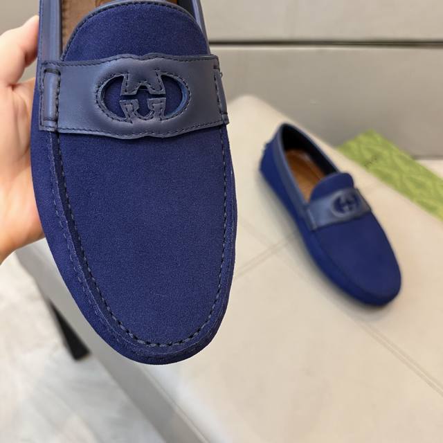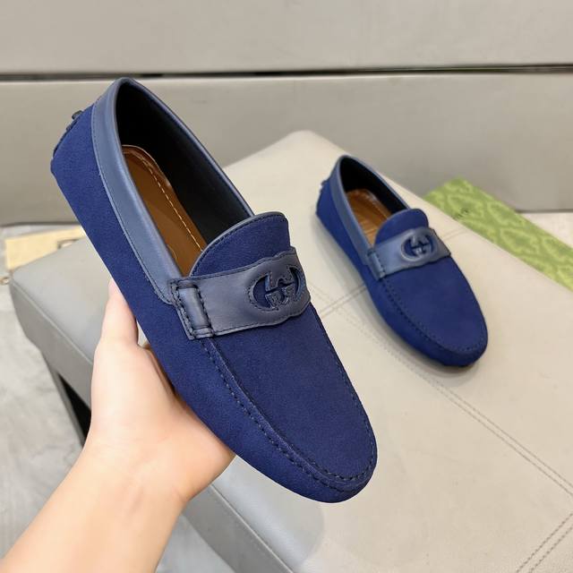 工厂p价 古奇男士豆豆鞋 2025官网同步 高端品质 市场顶级版本 进口头层磨砂皮黑色牛里垫脚水染棕牛里。 黑色进口磨砂皮 尺码38-45 DDD