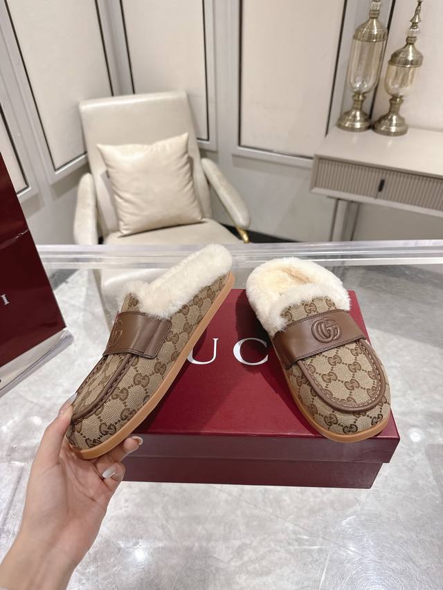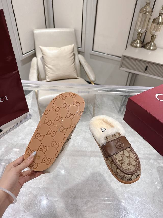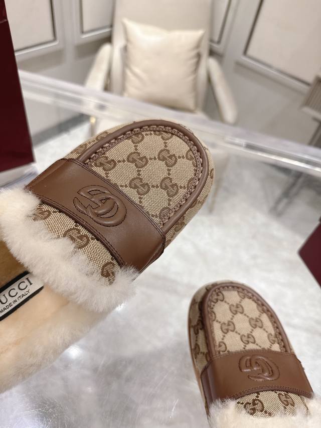 工厂P价 女装女鞋 运动原单 2025早秋最新配色Gucci 古驰毛拖 最新版面平底半羊毛拖鞋 作为设计传承的杰出代表,生动彰显经典优雅格调。这款鞋履采用品牌标志性字母G G交织图案压纹皮,成就隽永经典。这款鞋履材质柔软,廊形精致流畅,彰显日常优雅风范!出行方便上脚, 码数:35-39。 4041定做不退换