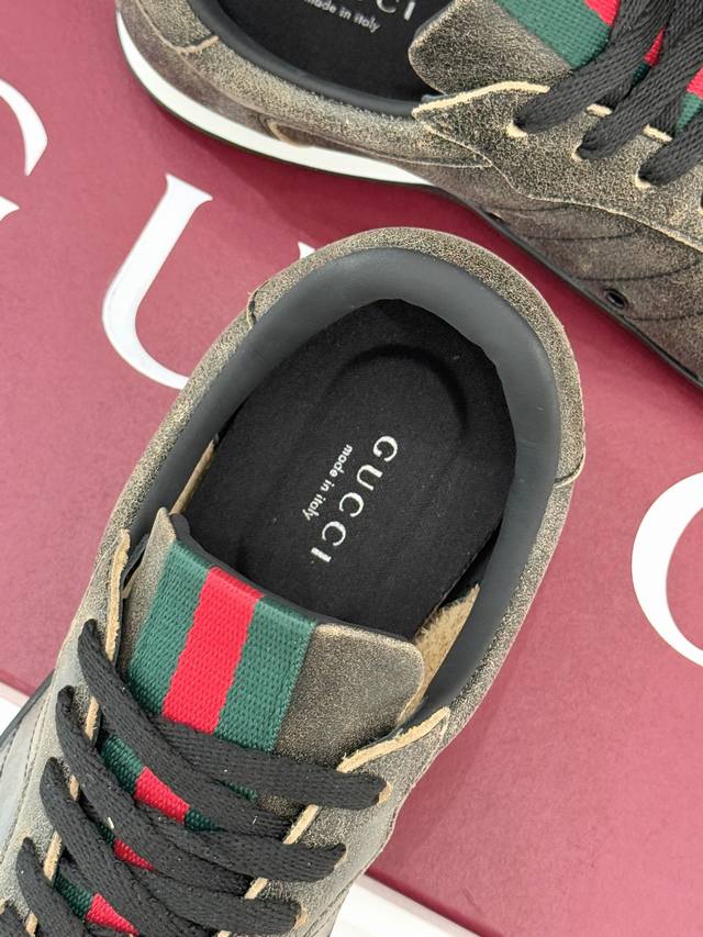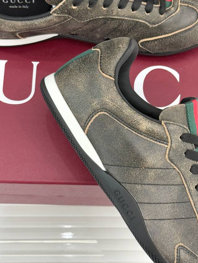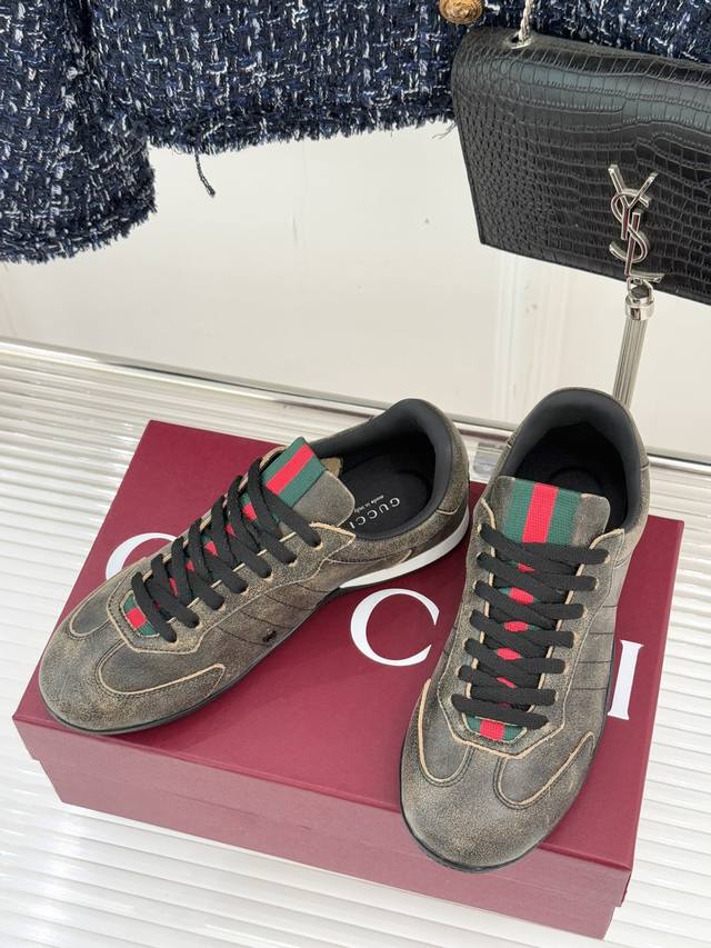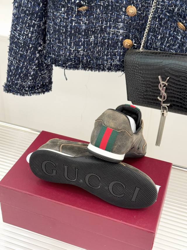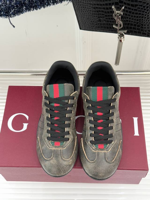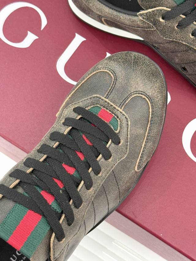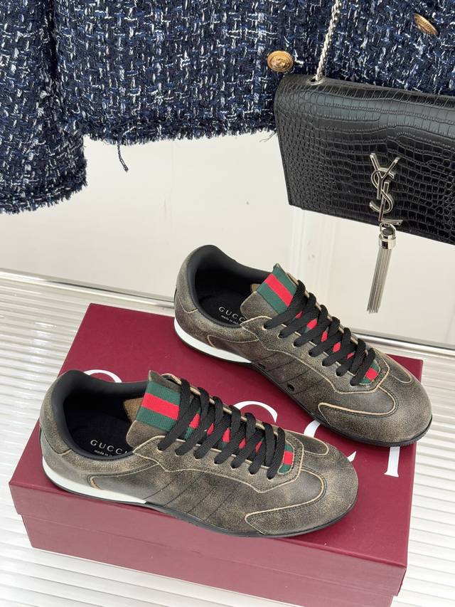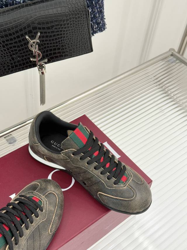 工厂P价 女装女鞋 运动原单 Gucci 古驰25Wf新品彩虹织带休闲德训鞋 当70年代运动基因遇上大胆色彩表达 这款休闲德训鞋以革新姿态重塑经典 让每一步都踏在潮流与舒适的平衡点上。 鞋型延续德训鞋的简约廓形, 线条流畅利落,自带复古滤镜, 而织带元素则以彩虹新貌焕活设计 打破传统红绿织带的固有印象, 成为视觉焦点的同时 亦是个性态度的无声宣言鞋面甄选优质皮革与透气面料拼接 触感细腻温润,搭配加宽鞋头设计, 包容各种脚型,让双脚自在舒展。 让日常穿搭在舒适中绽放独特锋芒。 内里踮脚均为羊皮 原版开模定制