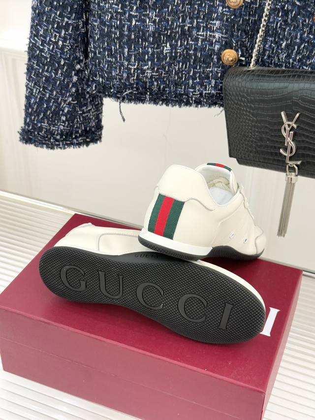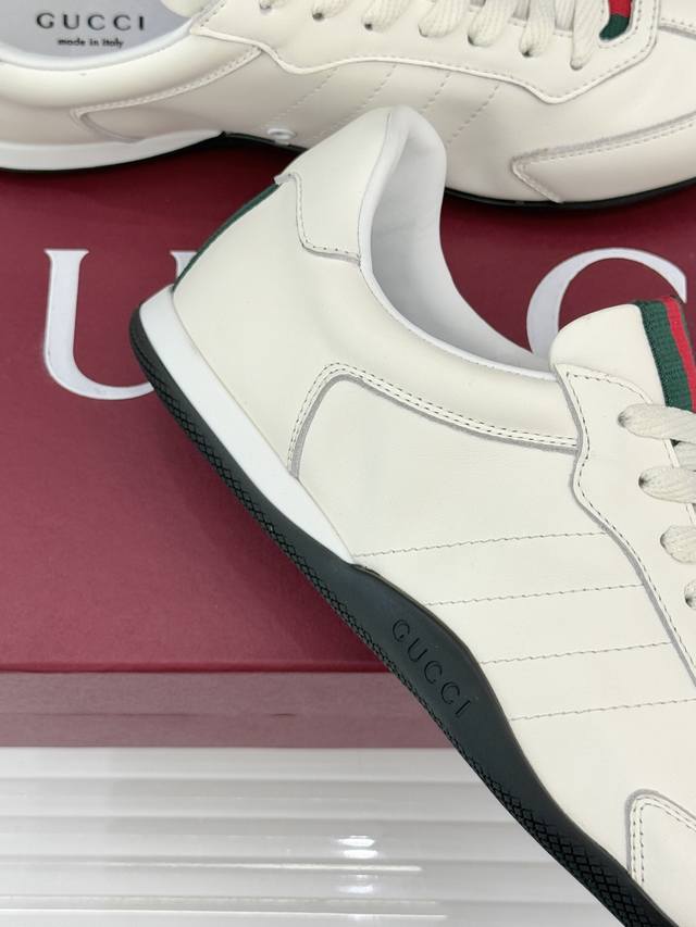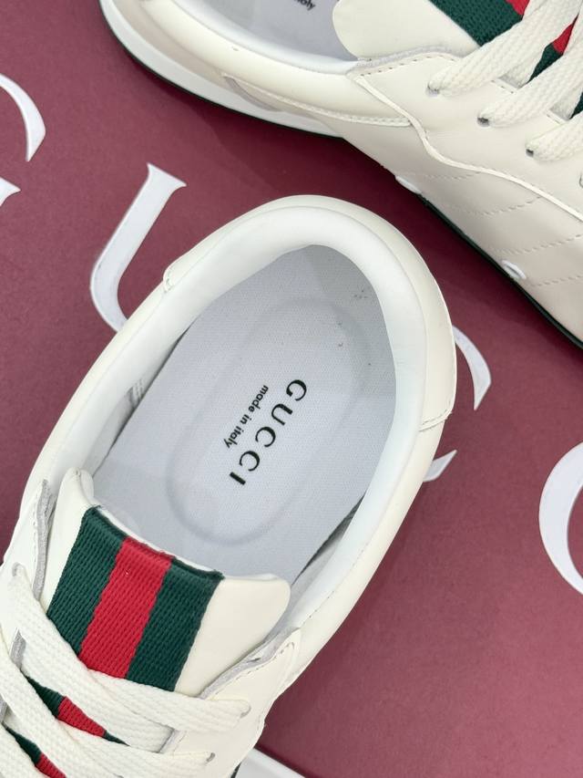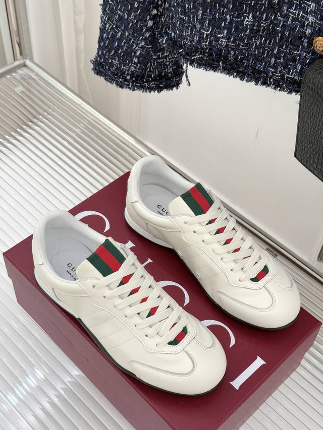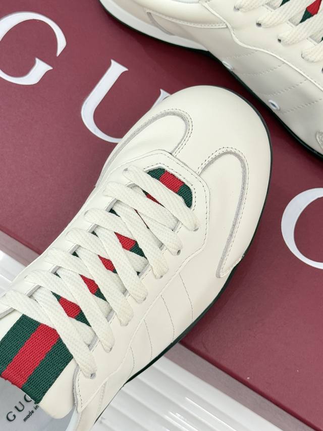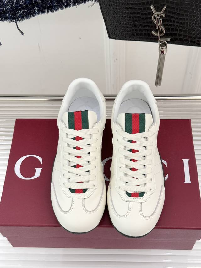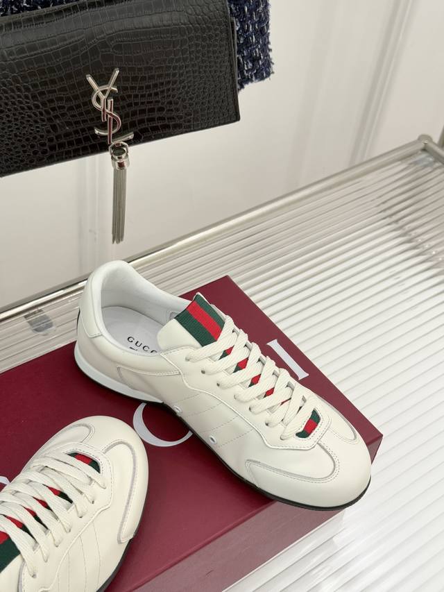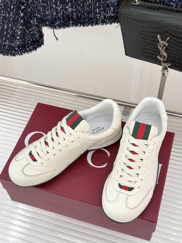 工厂P价 女装女鞋 运动原单 Gucci 古驰25Wf新品彩虹织带休闲德训鞋 当70年代运动基因遇上大胆色彩表达 这款休闲德训鞋以革新姿态重塑经典 让每一步都踏在潮流与舒适的平衡点上。 鞋型延续德训鞋的简约廓形, 线条流畅利落,自带复古滤镜, 而织带元素则以彩虹新貌焕活设计 打破传统红绿织带的固有印象, 成为视觉焦点的同时 亦是个性态度的无声宣言鞋面甄选优质皮革与透气面料拼接 触感细腻温润,搭配加宽鞋头设计, 包容各种脚型,让双脚自在舒展。 让日常穿搭在舒适中绽放独特锋芒。 内里踮脚均为羊皮 原版开模定制