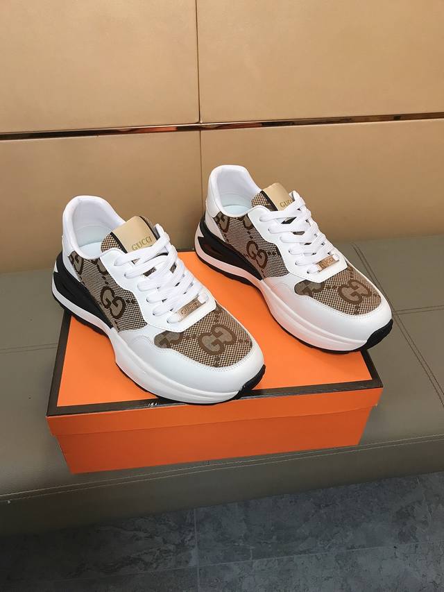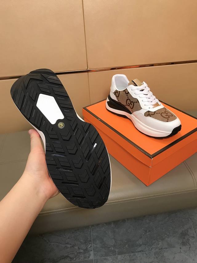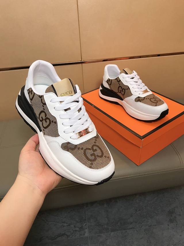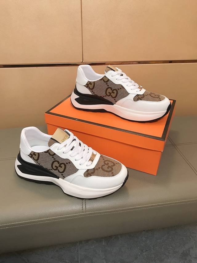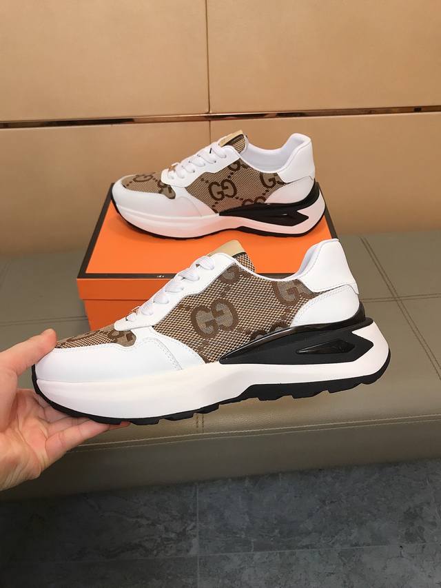 工厂p价 新款休闲鞋 古奇 2025款潮流男鞋,鞋面采用意大利牛皮搭配进口品牌印花面料,羊皮内里,防滑耐磨大底!款式高调大气,上脚百搭时尚,爆款转图,男码:38-44 DDD