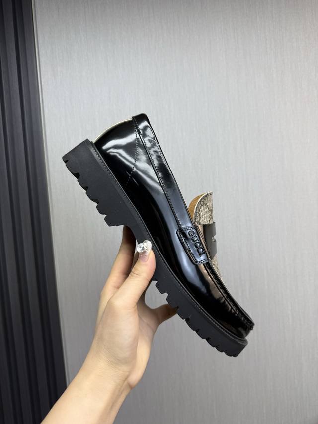 长期有货 Gucci 古奇 浅口乐福鞋巧妙运用圆形鞋头等设计时尚风范 面料:进口软牛漆皮和进口羊皮 内里:垫脚 进口羊皮 跟高:5.5...