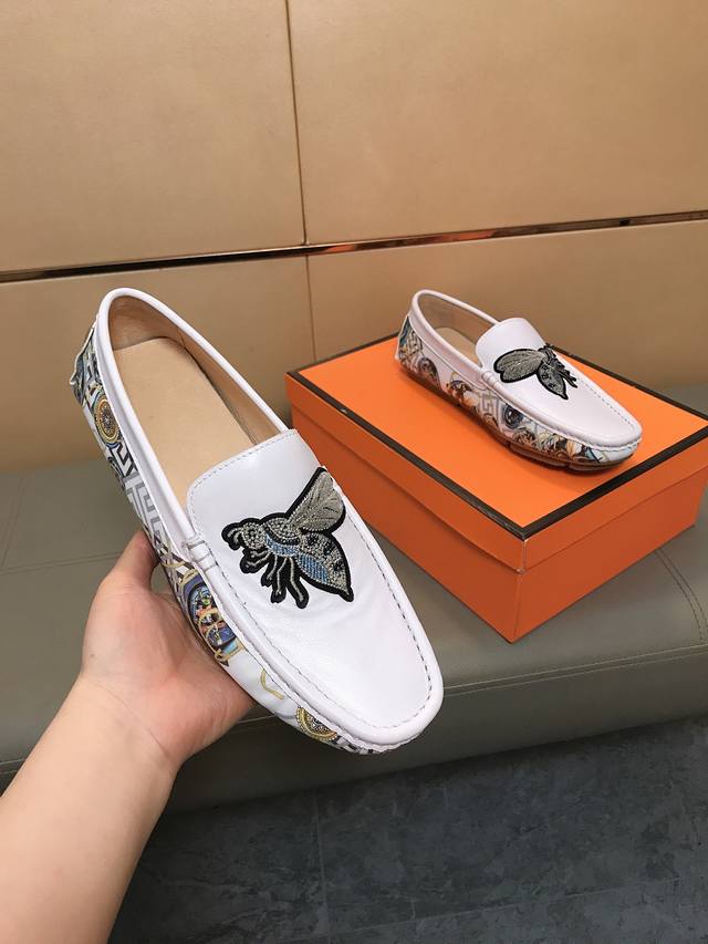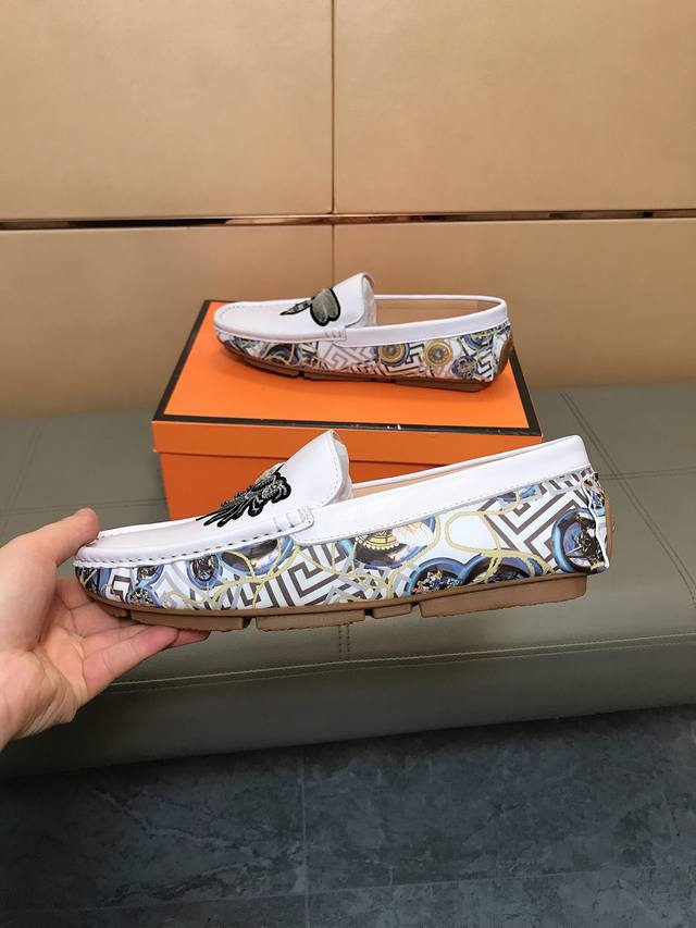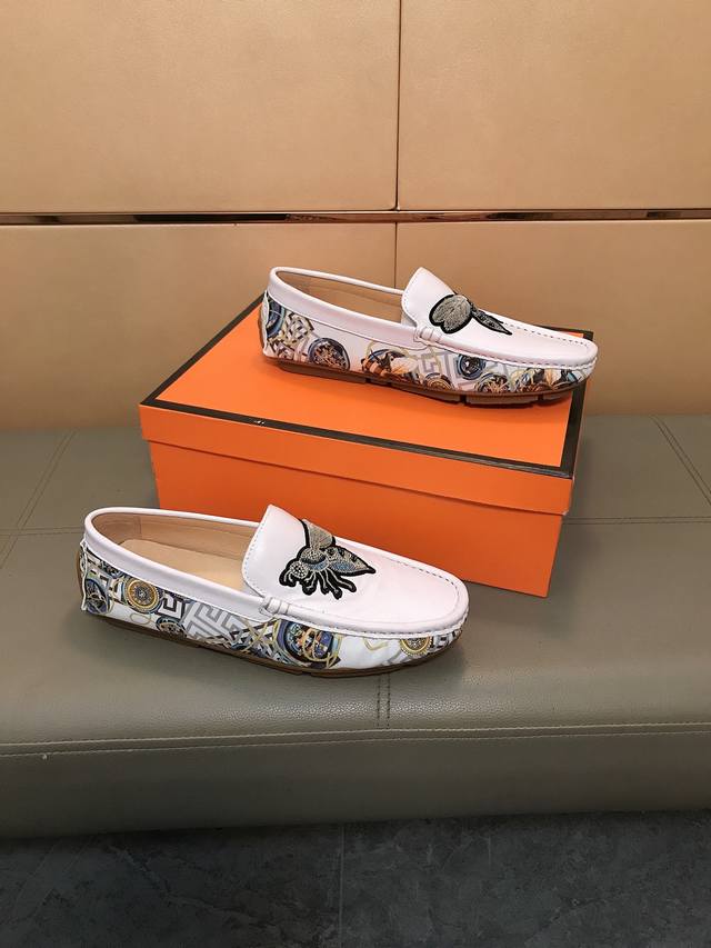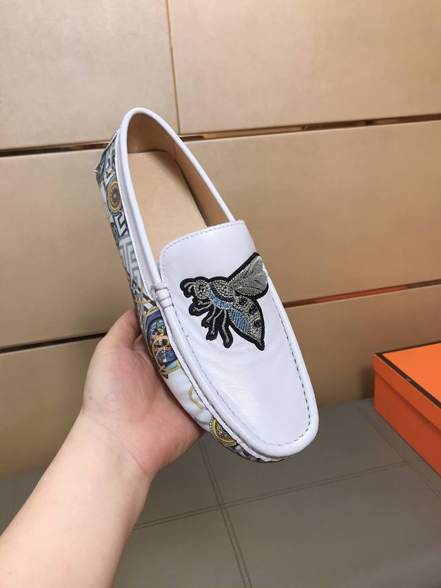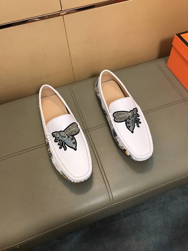 工厂P价 Gucci古奇 .男士休闲豆豆鞋,全新款上市,采用进口意大利牛皮搭配印花材料,水染羊皮内里制作,橡胶耐磨大底,潮男订制,百搭款,配码 38-44 DD