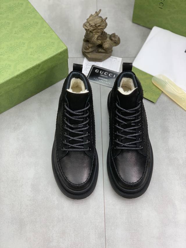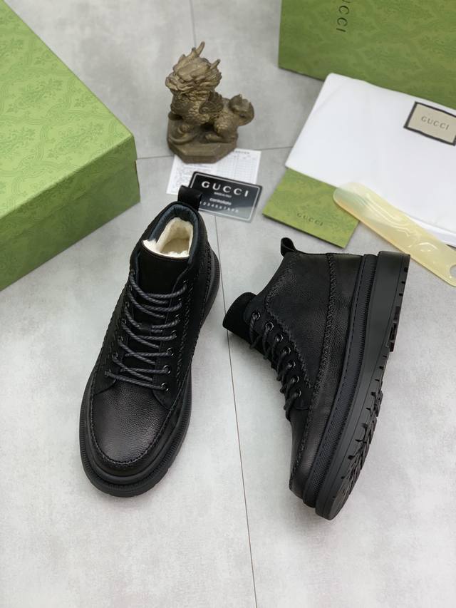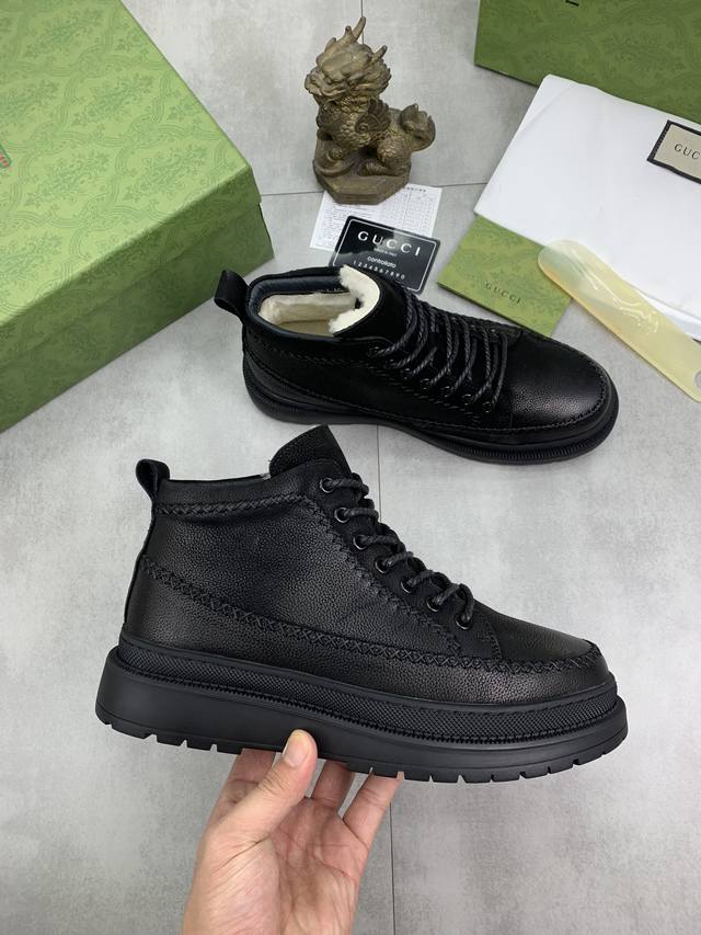 工厂p价p 实价 真羊毛 Gucci 爆款男鞋官方网同步正品品质 不是一般市场仿货可比拟的鞋面为进口意大利磨砂牛皮,内里:垫脚级真羊毛只有A级才能显效果 手感柔滑细腻鞋型大气,只有正品厂才能做到原厂大底完美的韧性 才能让客户告别一次性消费 真羊毛里 超级保暖.黑色 棕色可选 码数:37-45 DDD