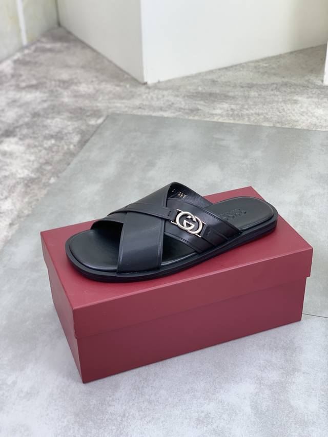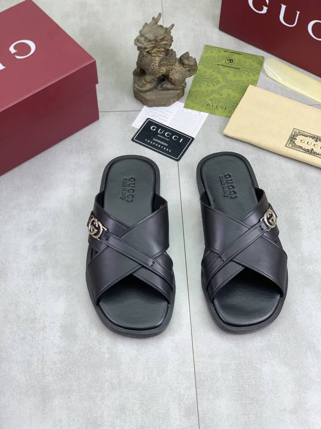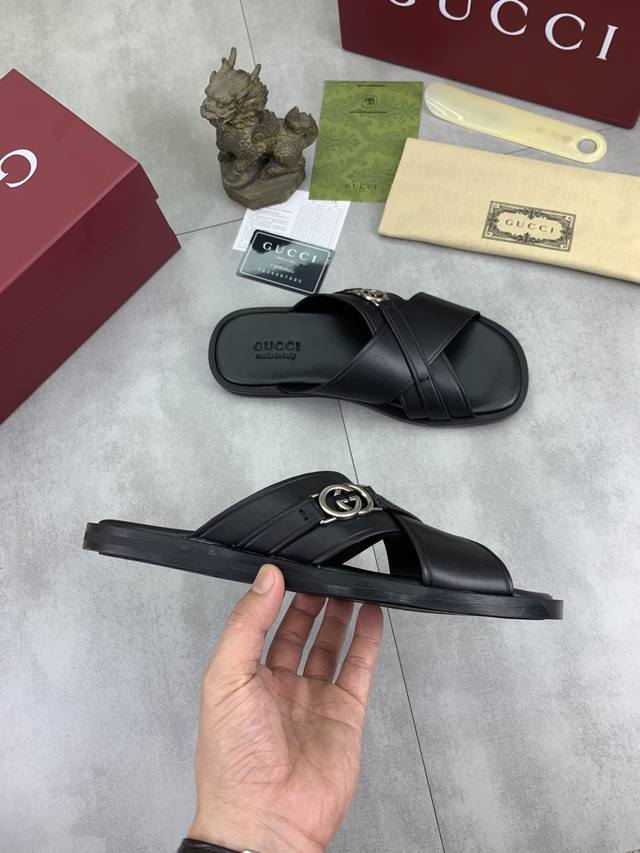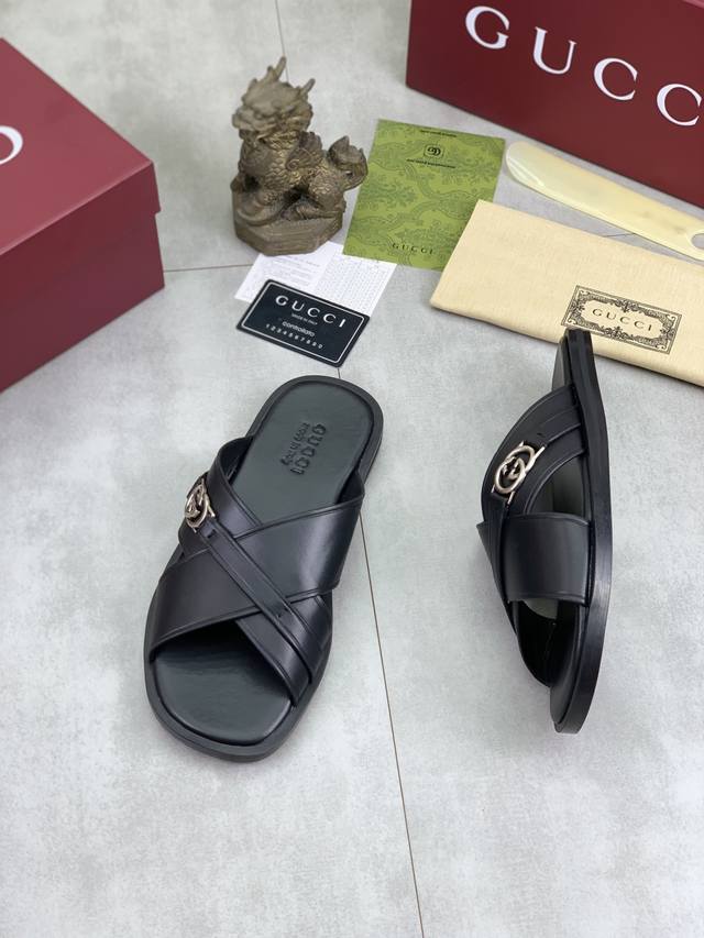 Guccl 2025春夏新款休闲女土互扣式双G凉拖。这款单品出自Gucci...