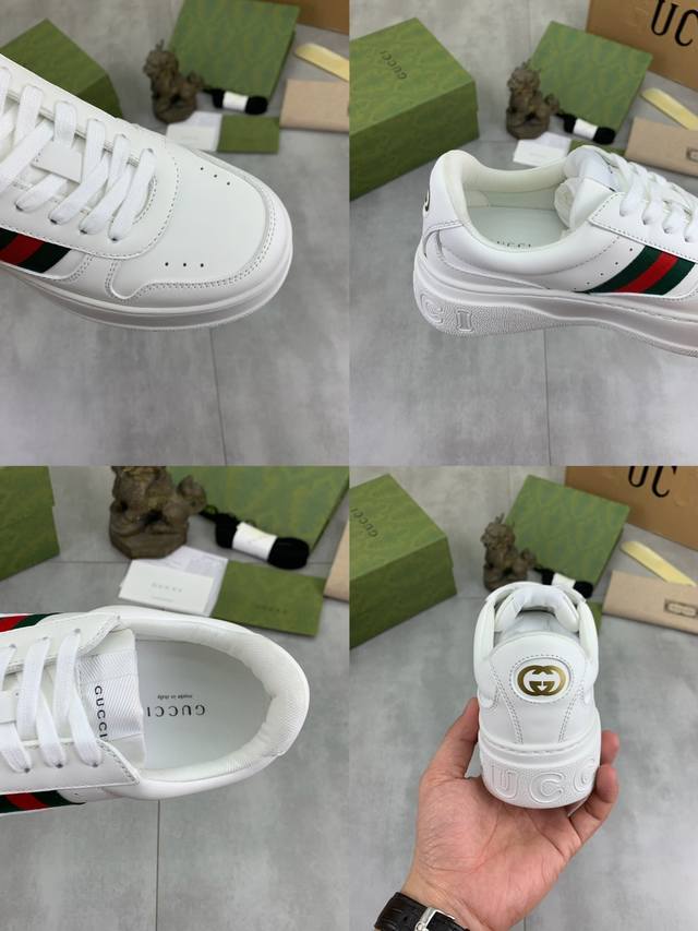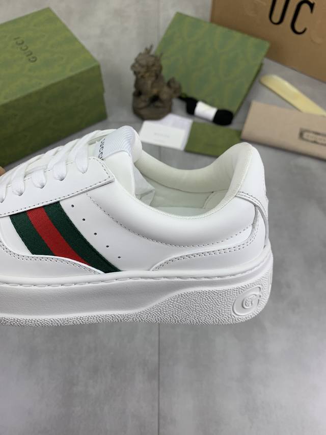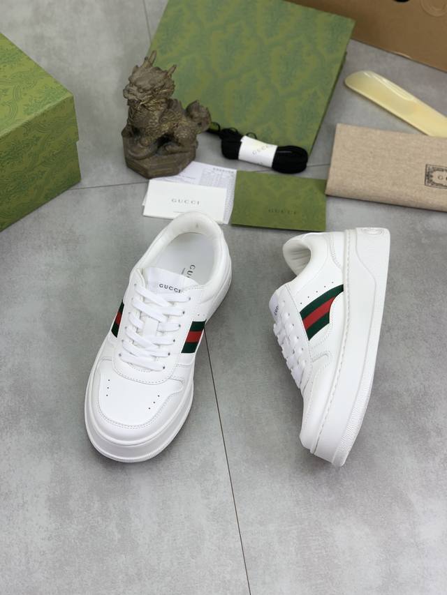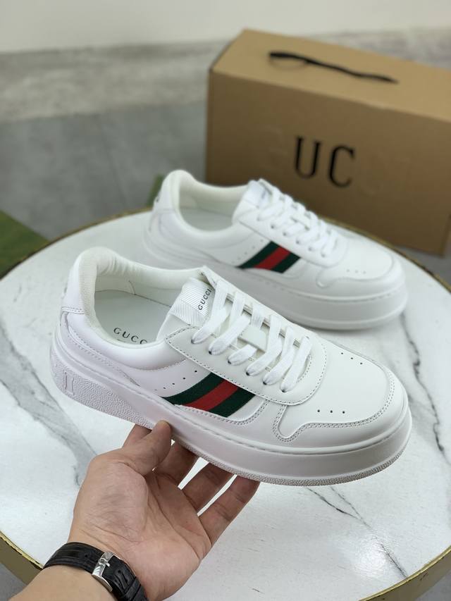 工厂P价P 实价 Gucci 古驰家 高版本全新系列,情侣饼干鞋,厚底运动鞋,这款的舒适度真的很绝,超级轻便舒适百搭,必备单品,这款单品充满了趣味十足的复古气息。G家全新系列继续从其他时代的日常生活中寻找灵感,并融入当下的设计精髓,打造令人耳目一新的设计。这款运动鞋采用Gg印花帆布制作,饰以经典双G字母交织图案,突显深厚的品牌标识内涵。Gg印花压纹皮革,饰光面皮革细节,增高5Cm 穿上立马提升气场! 配全套包装手提袋 飞机盒 Size:35-45