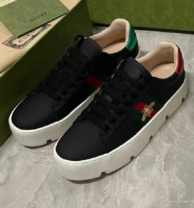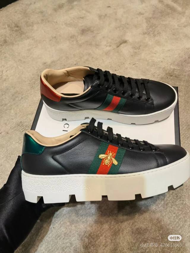 工厂p价p: Gucci 古奇新款 厚底小白鞋。橡胶大底,面料:丝带牛皮 羊皮内裡,羊皮垫脚, 35-45 DDD