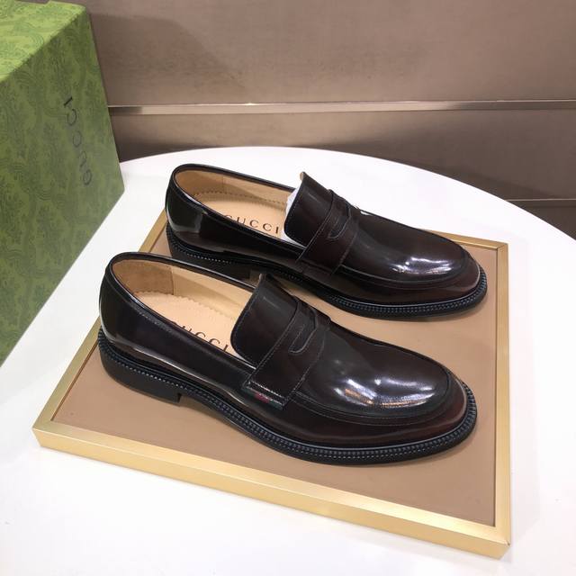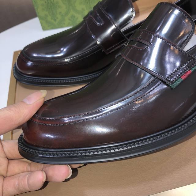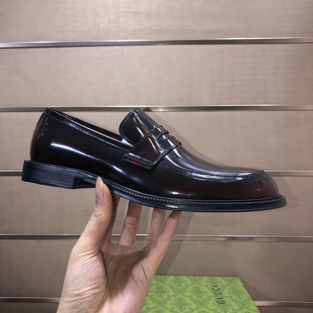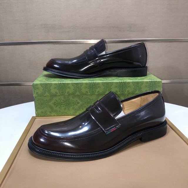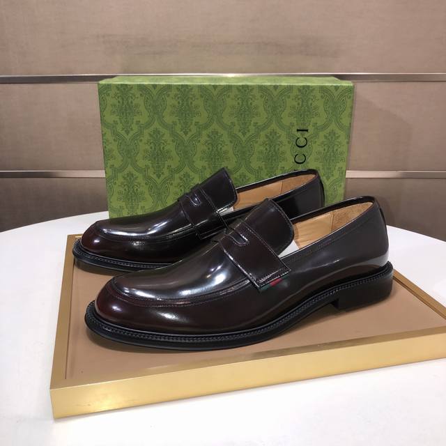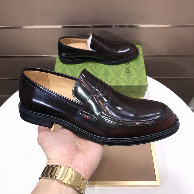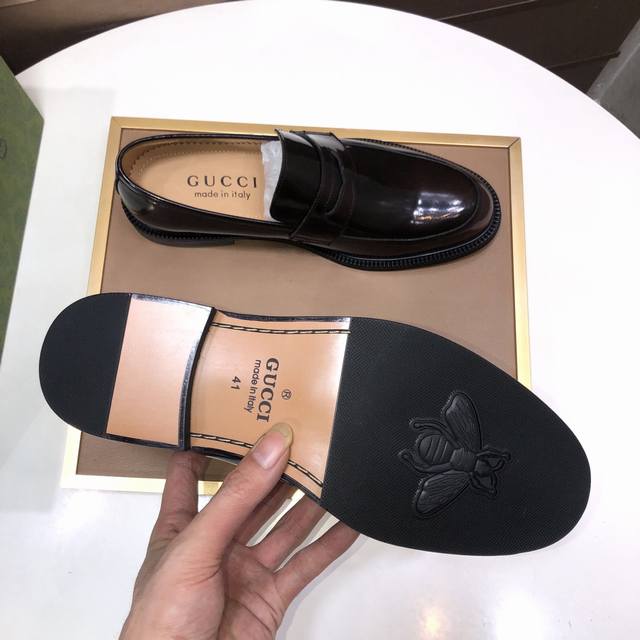 工厂P批 意大利顶级奢侈男鞋巨头 Gucci 古奇 全牛皮内里 新款报到原汁原味的欧式风格 赏心悦目为了让鞋子更加耐用不变形制作继续沿用传统做法 但仍然不乏创新皮质上选择原版羊皮 流畅自然 并格外光亮进口牛皮制作而成 土豪的第一选择 38-45 45定做