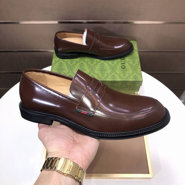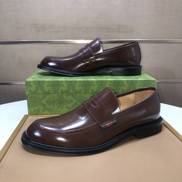 工厂P批 意大利顶级奢侈男鞋巨头 Gucci 古奇 全牛皮内里 新款报到原汁原味的欧式风格 赏心悦目为了让鞋子更加耐用不变形制作继续沿用传统做法 但仍然不乏创新皮质上选择原版羊皮 流畅自然 并格外光亮进口牛皮制作而成 土豪的第一选择 38-45 45定做