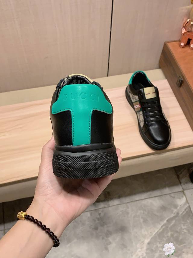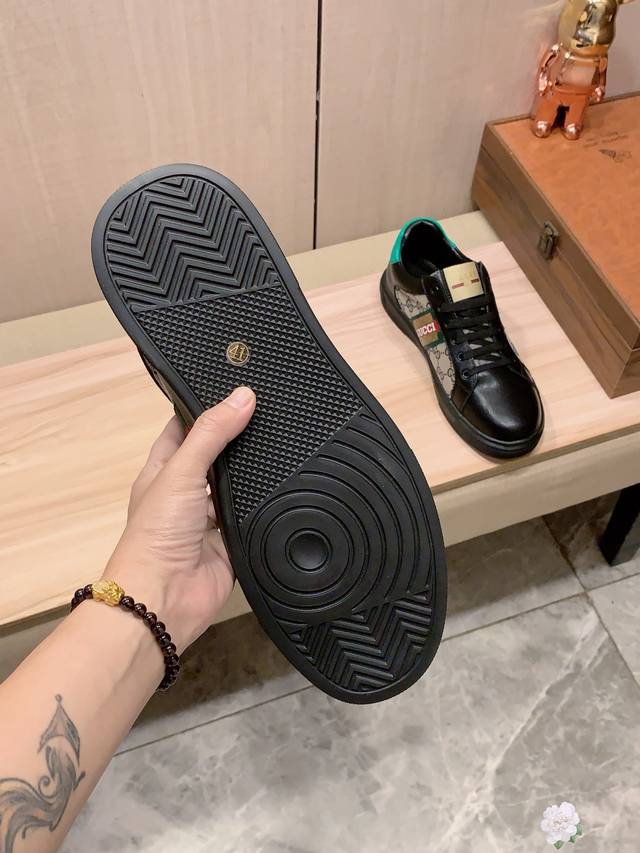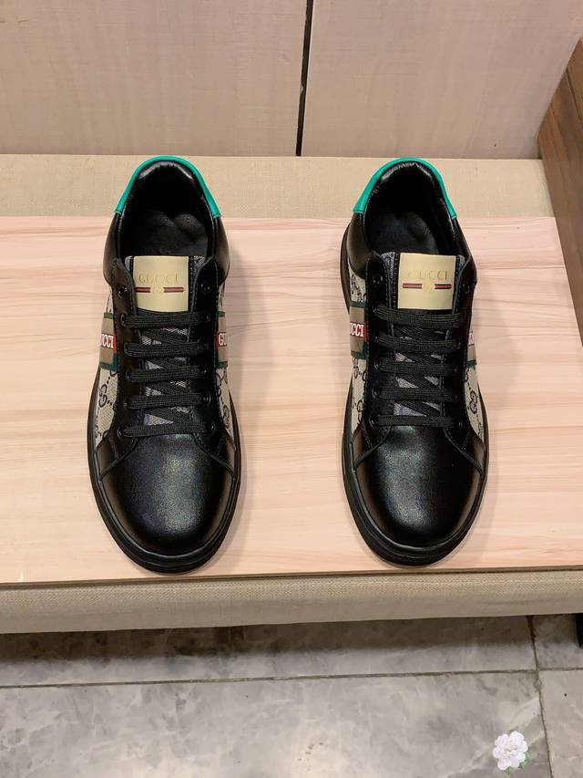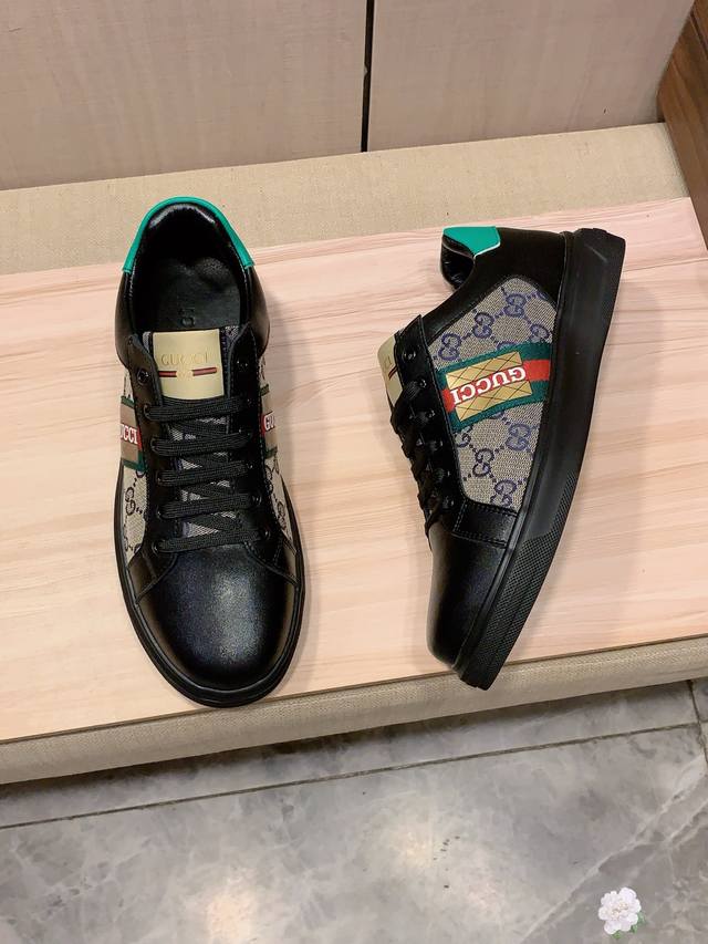新款: 厂价 古奇Gucci* 最新爆款休闲鞋,顶端品牌 奢侈~代购,顶级~质量。 鞋面選用进口透气牛皮搭配布料材质透气羊皮垫脚 精细做工。原版个性时尚柔软橡膠