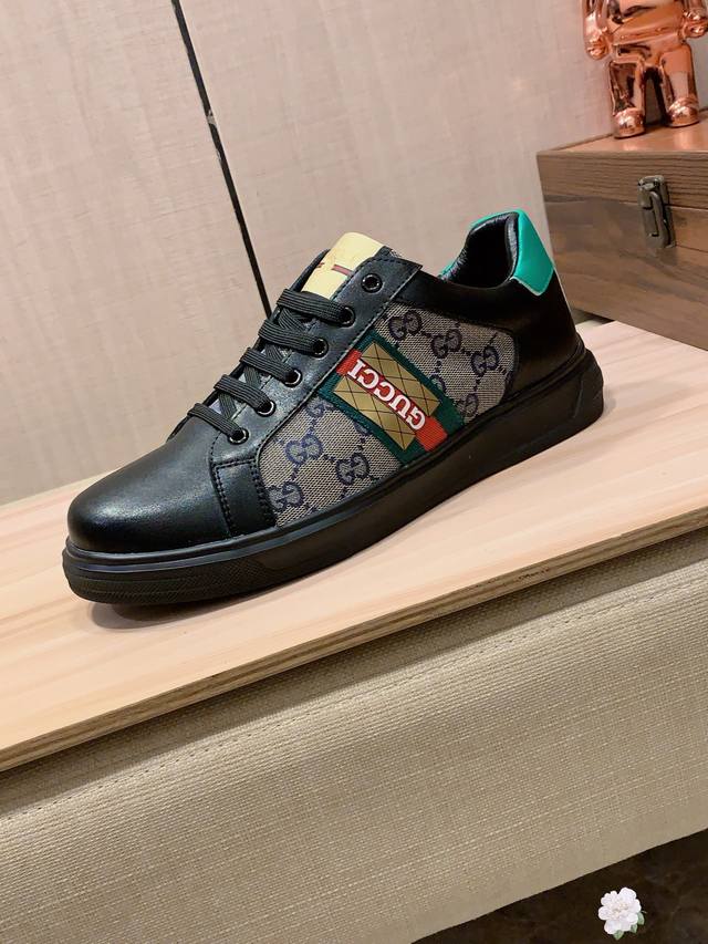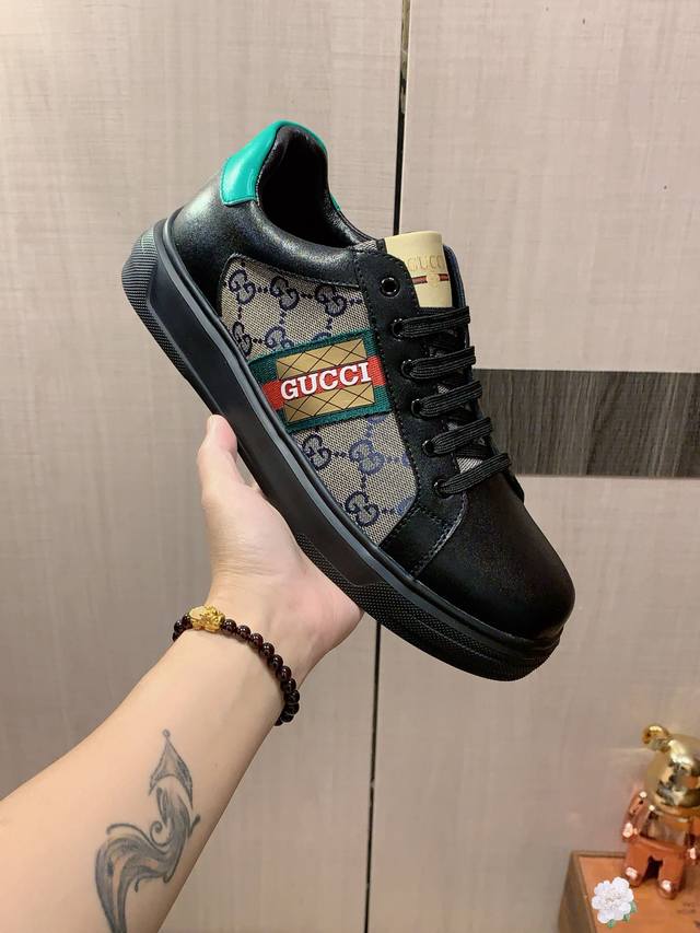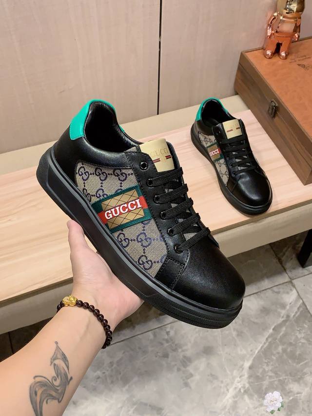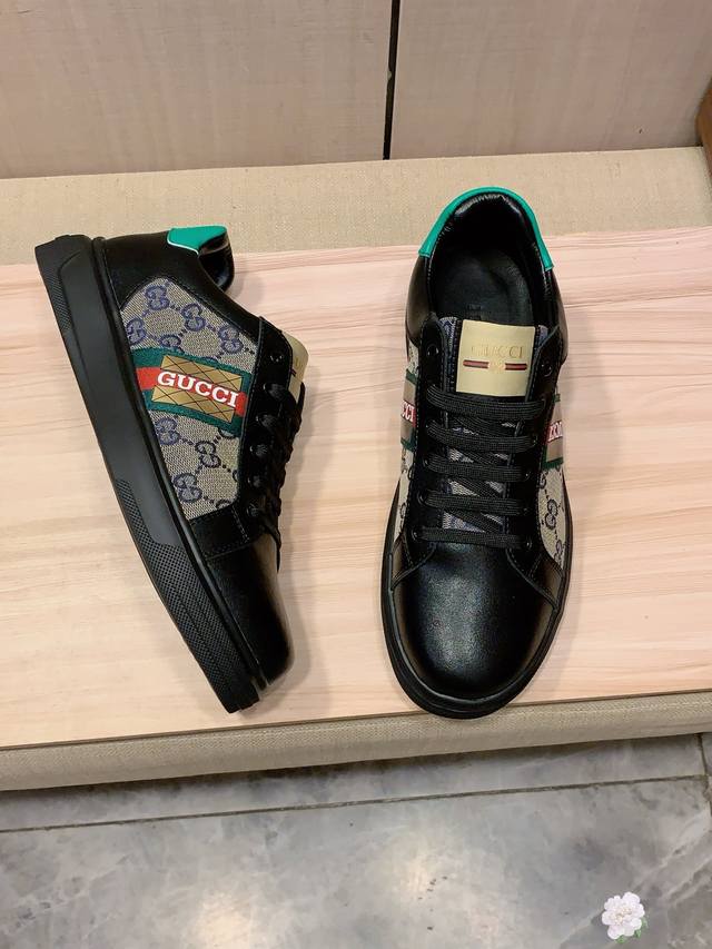 新款: 厂价 古奇Gucci* 最新爆款休闲鞋,顶端品牌 奢侈~代购,顶级~质量。 鞋面選用进口透气牛皮搭配布料材质透气羊皮垫脚 精细做工。原版个性时尚柔软橡膠耐磨防滑大底,上脚轻巧舒适,实物拍摄實物更好看,111:码: 38-44,3色入选
